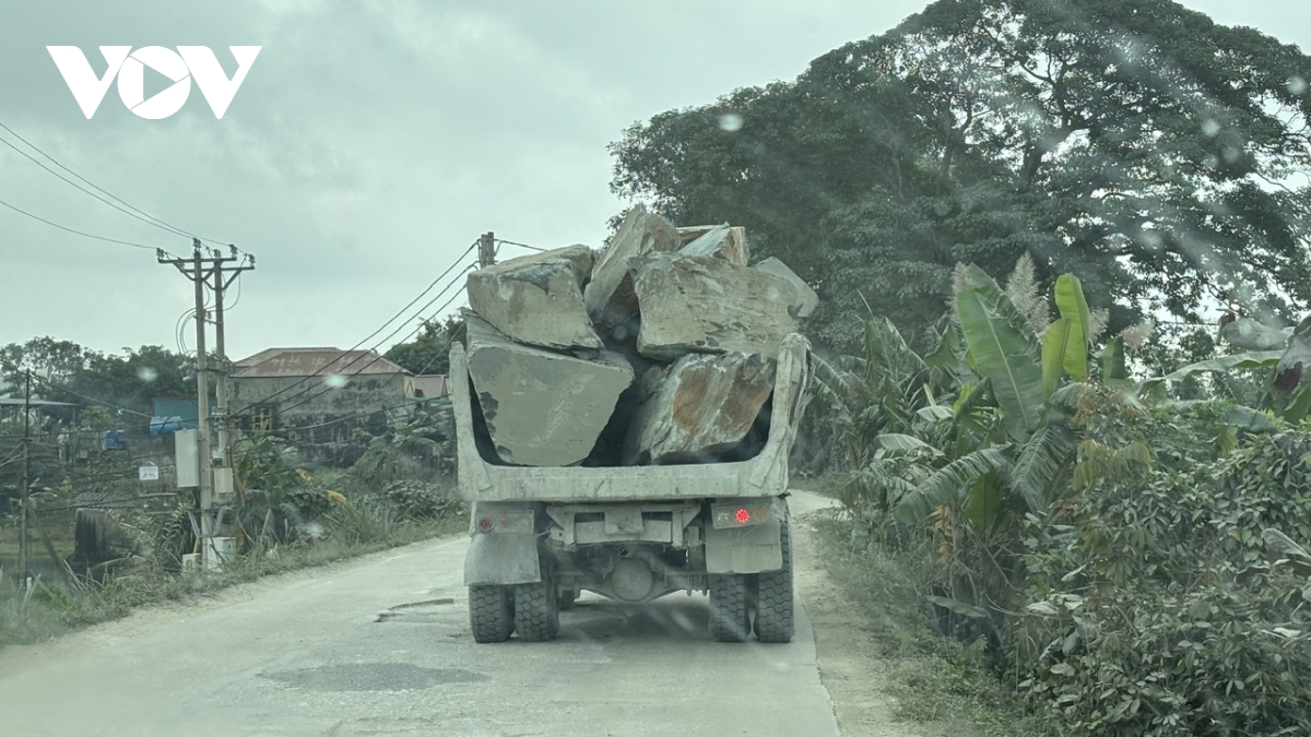 Xe tải chở đá qua đường liên xã ở Thanh Hóa