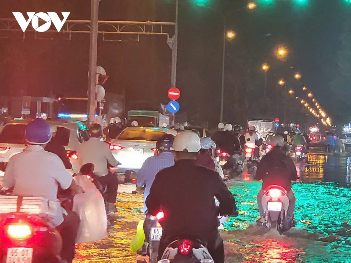 Tuy nhiên nhiều khu vực, đoạn đường thấp bên ngoài cống, đập vẫn bị ngập sâu. Đường Nguyễn Văn Cừ nối dài, đoạn trước Bệnh viện nhi đồng Cần Thơ ngập nặng trong những ngày qua.