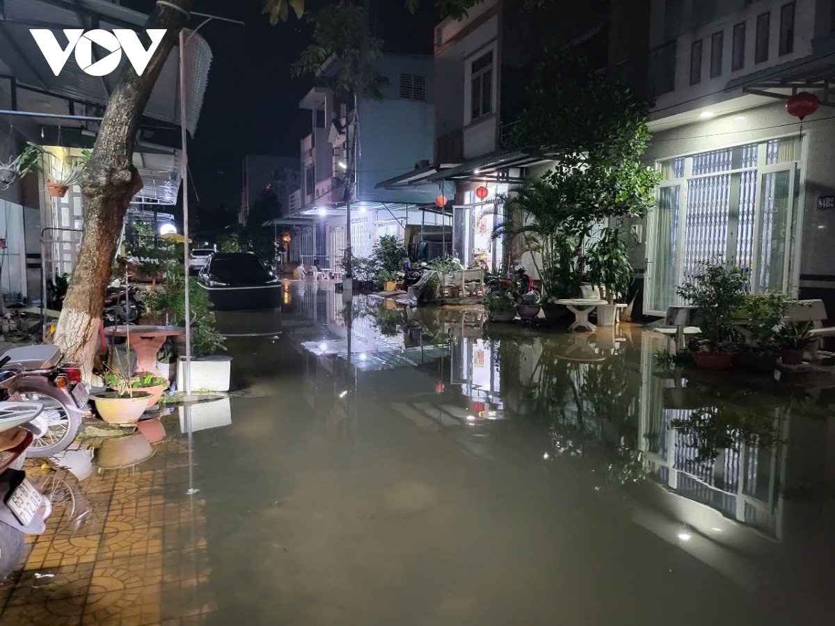 Trong sáng sớm triều cường dâng cao đã gây ngập nhiều nơi.