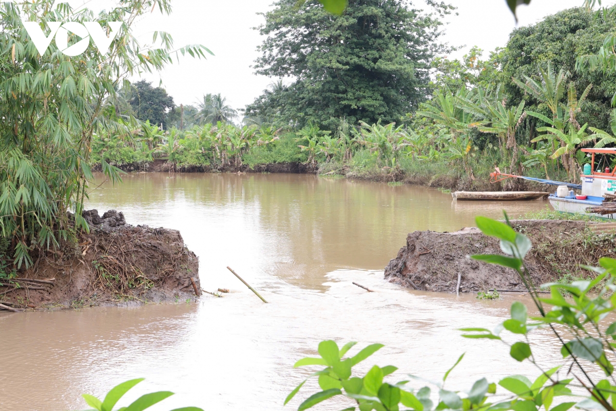 Triều cường dâng cao đã làm một đoạn đê bao ở Cồn Sơn (phường Bình Thủy) bị vỡ.