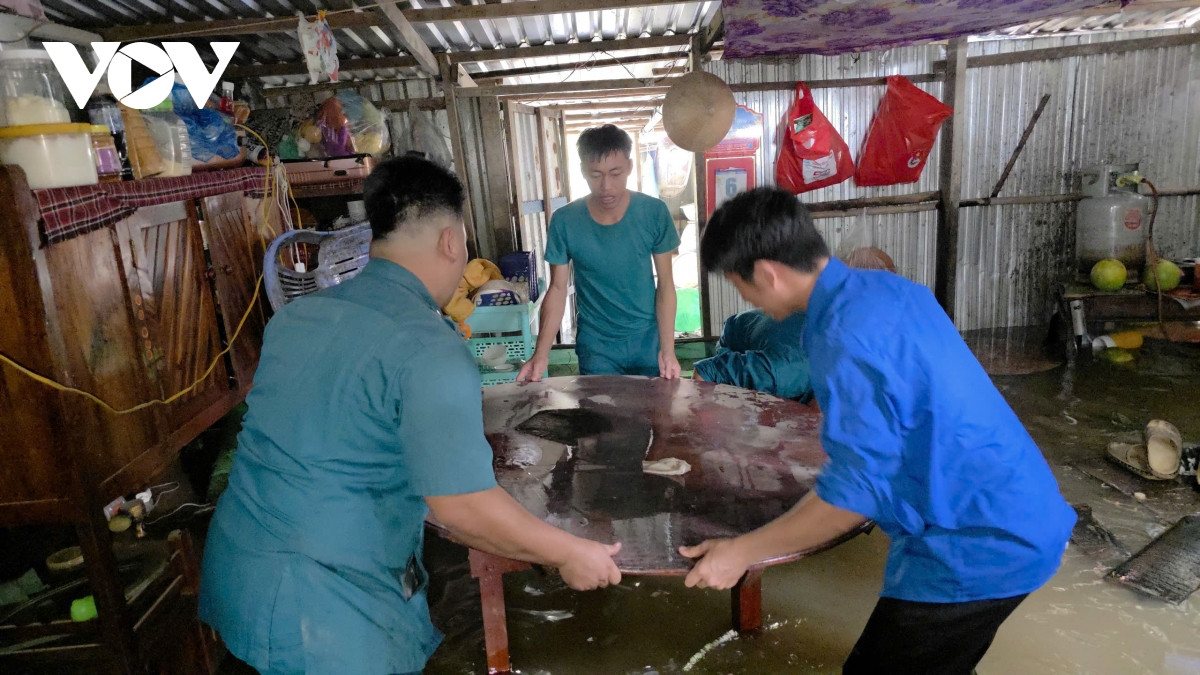 Chính quyền địa phương cử lực lượng xuống hỗ trợ người dân di dời tài sản sau sự cố đê bao