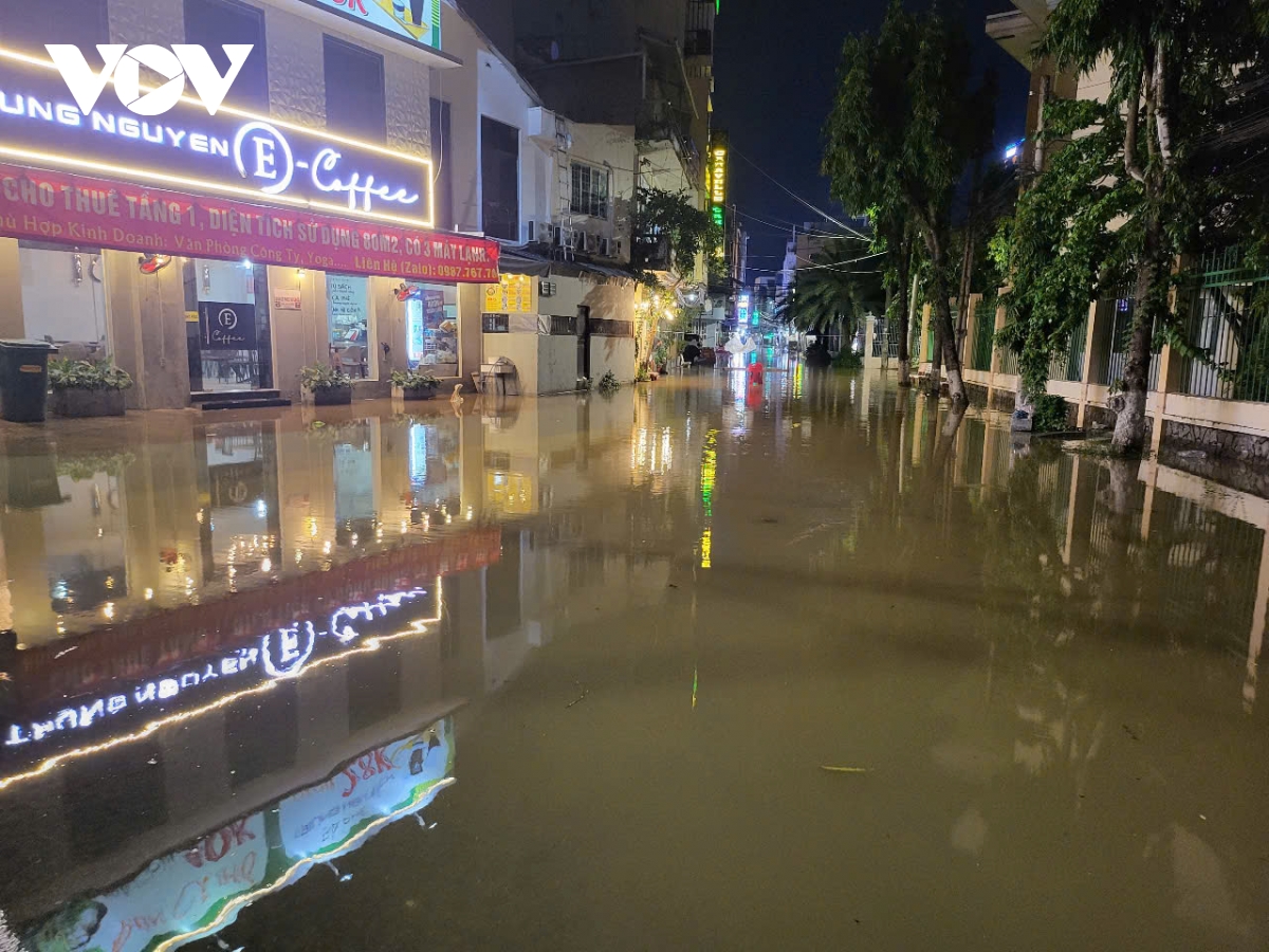 Nhiều con đường ở phường Hưng Phú vẫn mênh mông nước vào lúc 19h