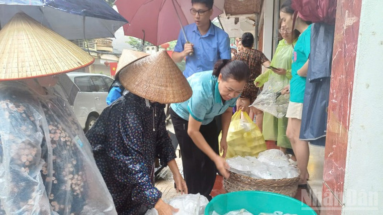 8 giờ sáng, đồng chí Nguyễn Anh Tuấn, Chủ tịch Ủy ban nhân dân phường Thục Phán cho biết, địa phương đã tập trung đồ dùng, nhu yếu phẩm và đang vận động, kêu gọi tổ chức, cá nhân ủng hộ thêm; phường khẩn trương tổ chức lực lượng, dùng xuồng tiếp cận, tiếp tế thực phẩm, đồ dùng sinh hoạt cho người dân.