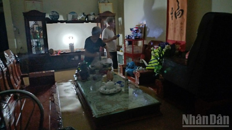 Nước lũ lên nhanh, người dân dọn dẹp đồ đạc ngay trong đêm.