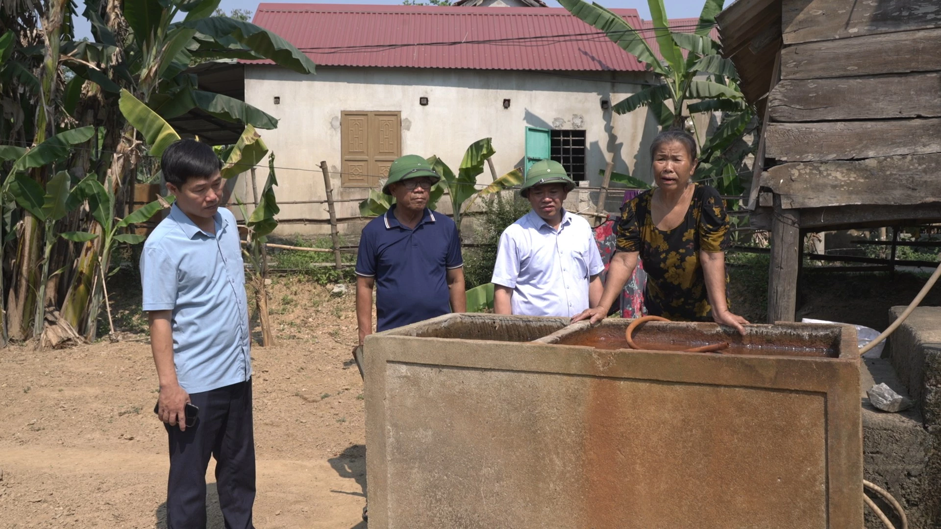 Lãnh đạo xã Tân Gianh đi kiểm tra các hộ gia đình thiếu nước tại thôn Trung Tiến - Ảnh: N.T