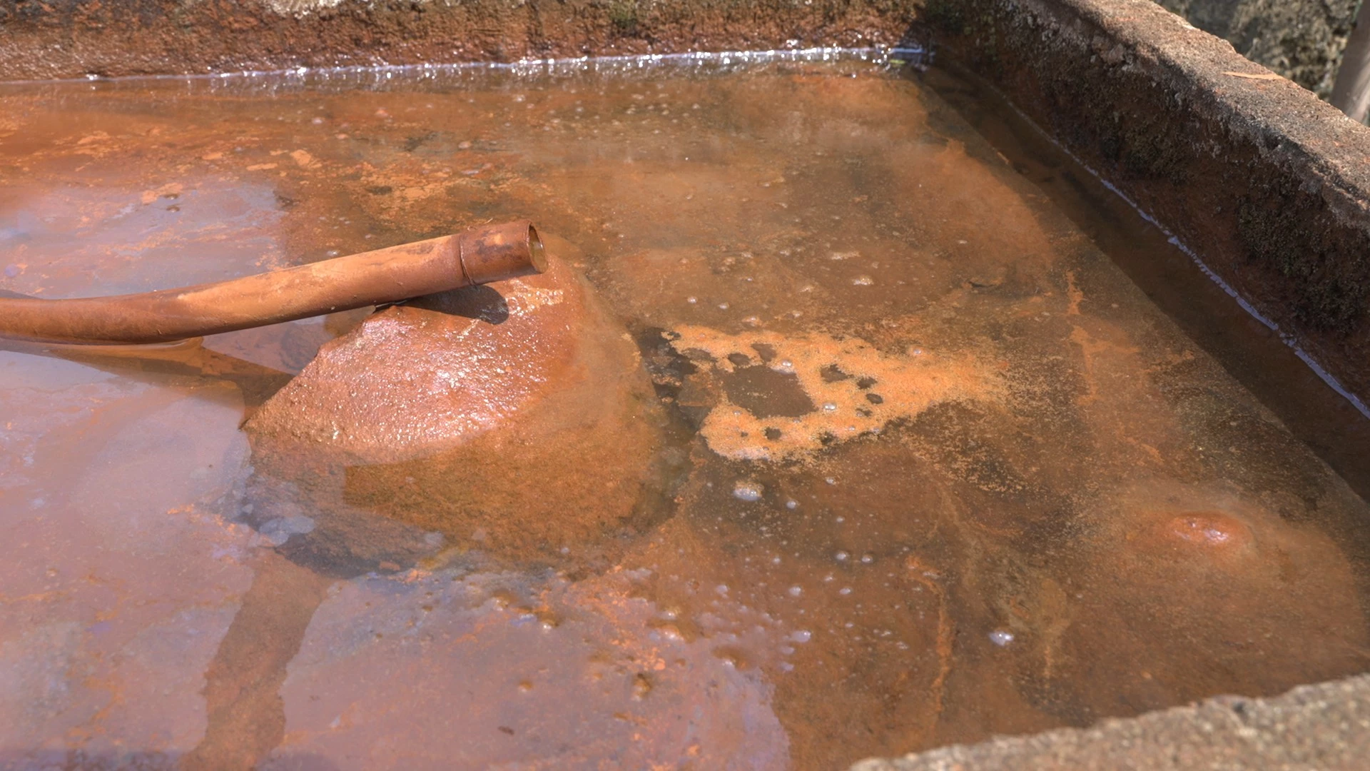 Ảnh 2: Bể lọc nước đặc quánh phèn của gia đình bà Xuân, thôn Trung Tiến, xã Tân Gianh - Ảnh: N.T