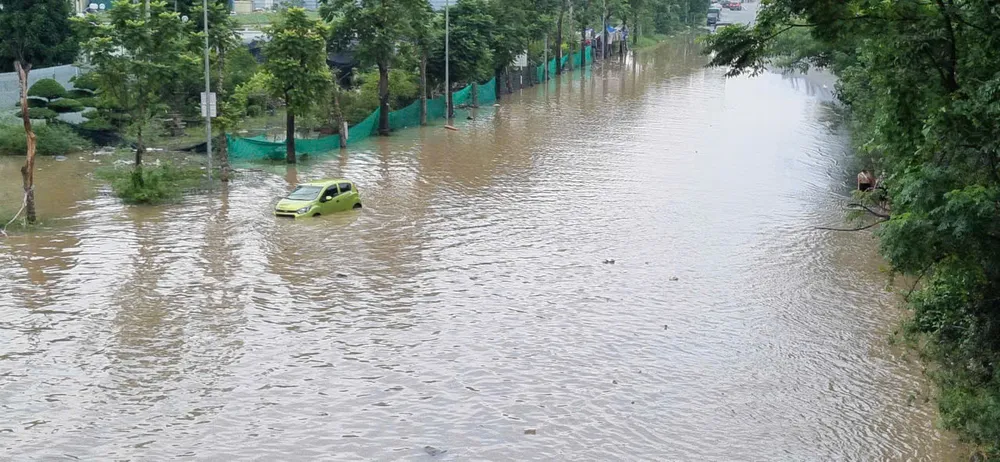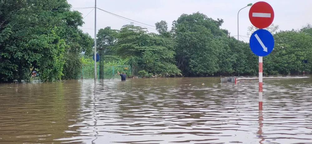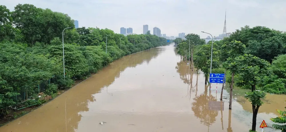 Hiện nhiều tuyến đường ở Hà Nội vẫn chìm trong biển nước. Ảnh: V.LONG