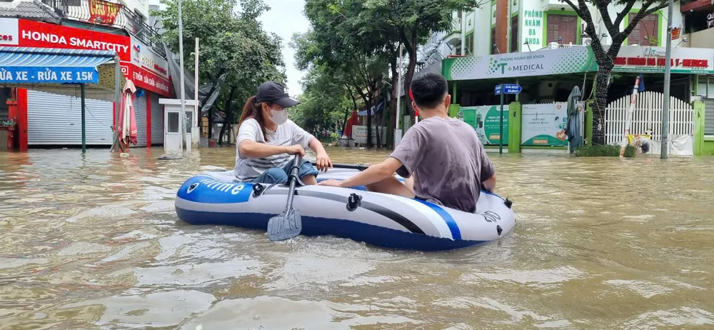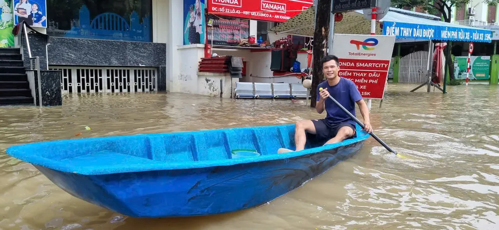 Ngay gần đó, anh Nguyễn Văn Kiên, chủ quán ăn nhỏ, chia sẻ anh đã quen “sống chung với lũ”. “Mở quán được hơn năm, tôi phải sắm ngay một chiếc thuyền. Cứ mưa ngập là dùng thuyền chở nhân viên, đồ ăn, thậm chí phục vụ tận nhà cho khách không thể ra ngoài” – anh kể.