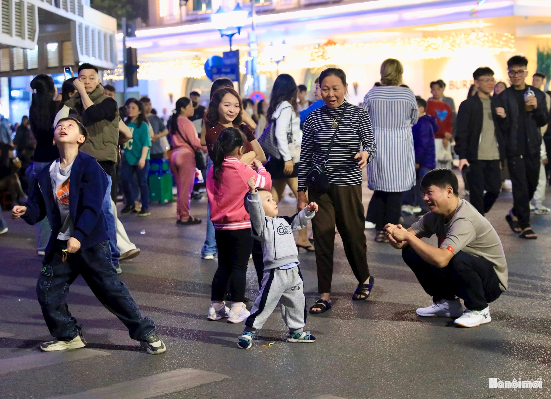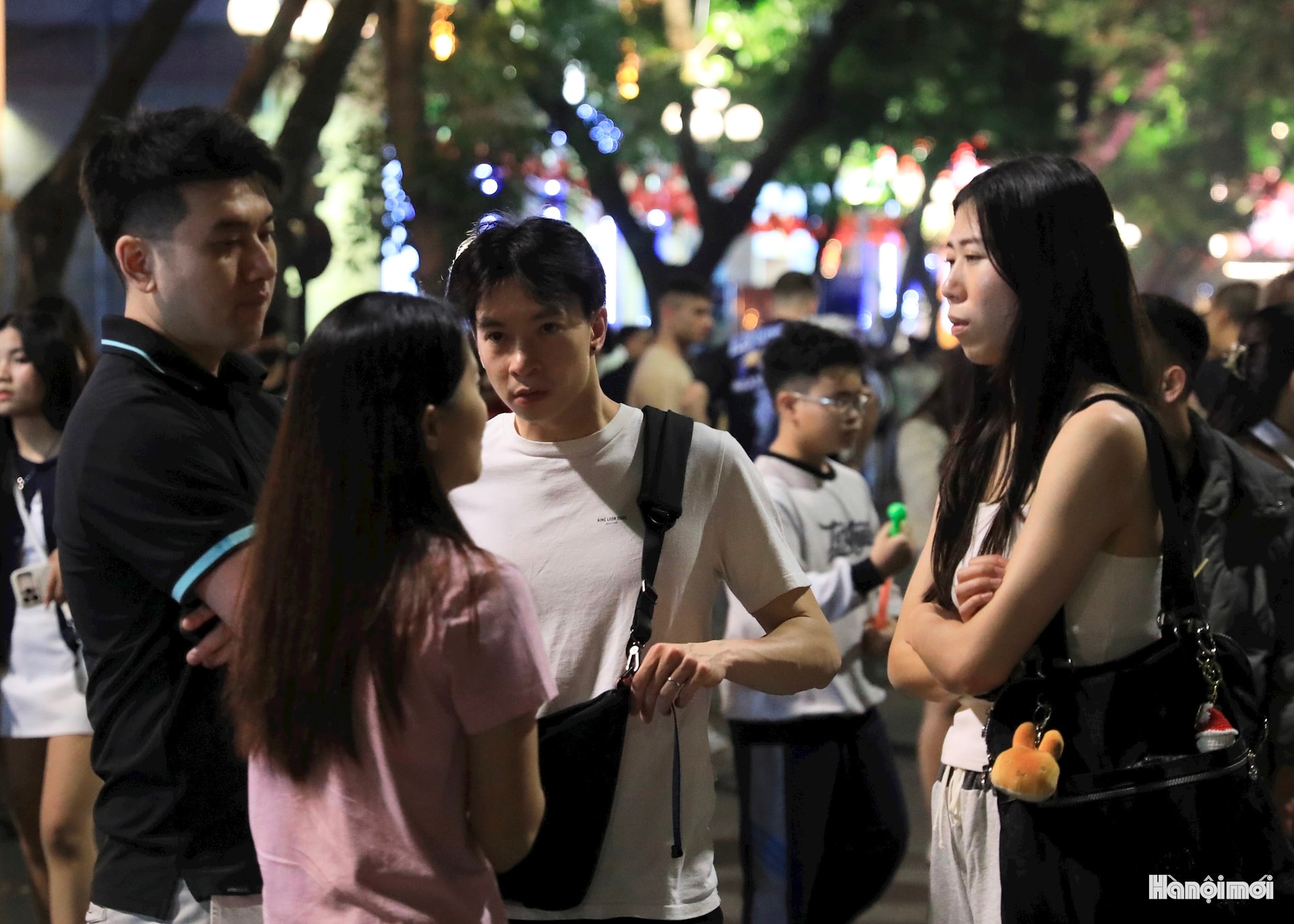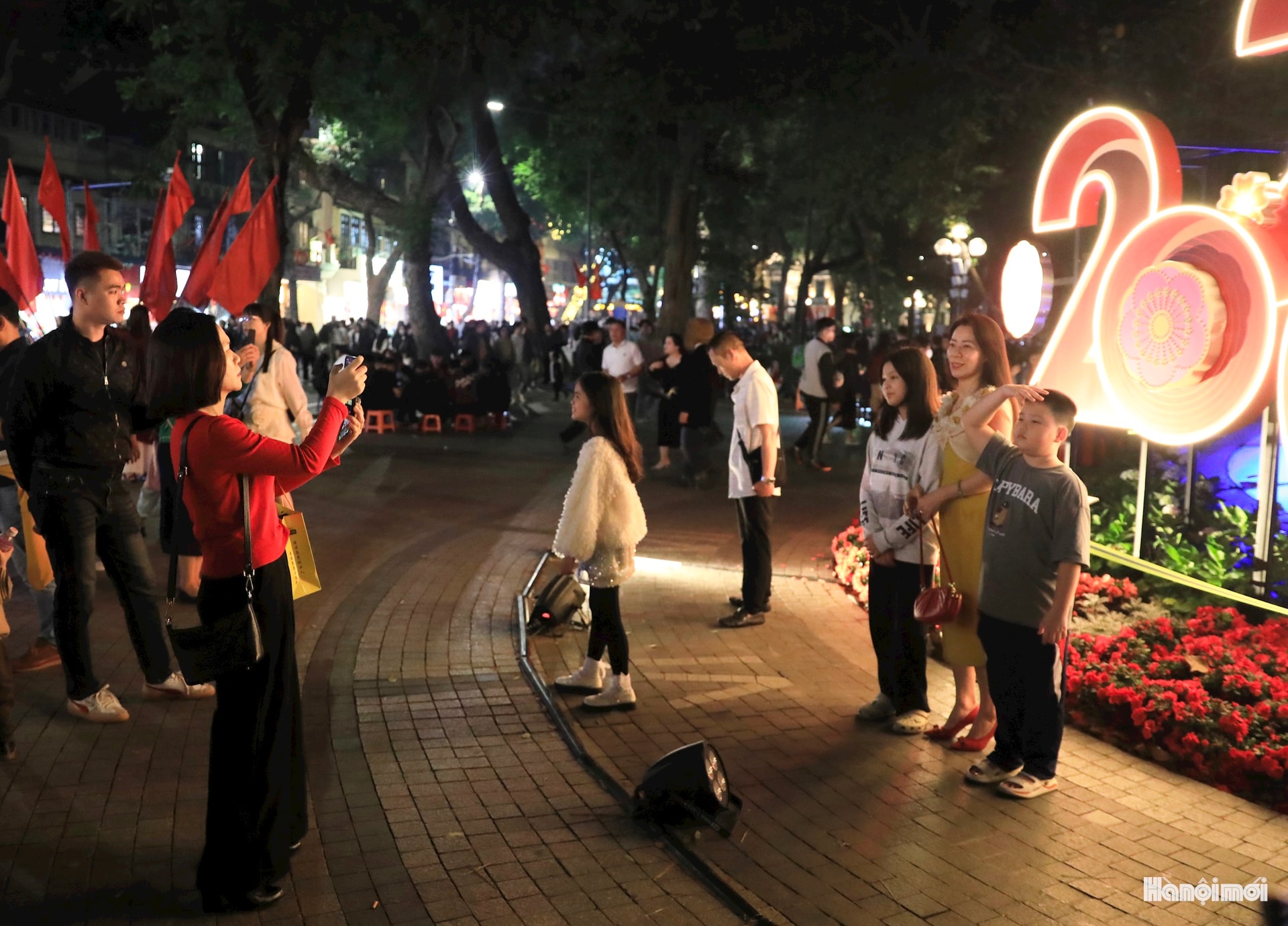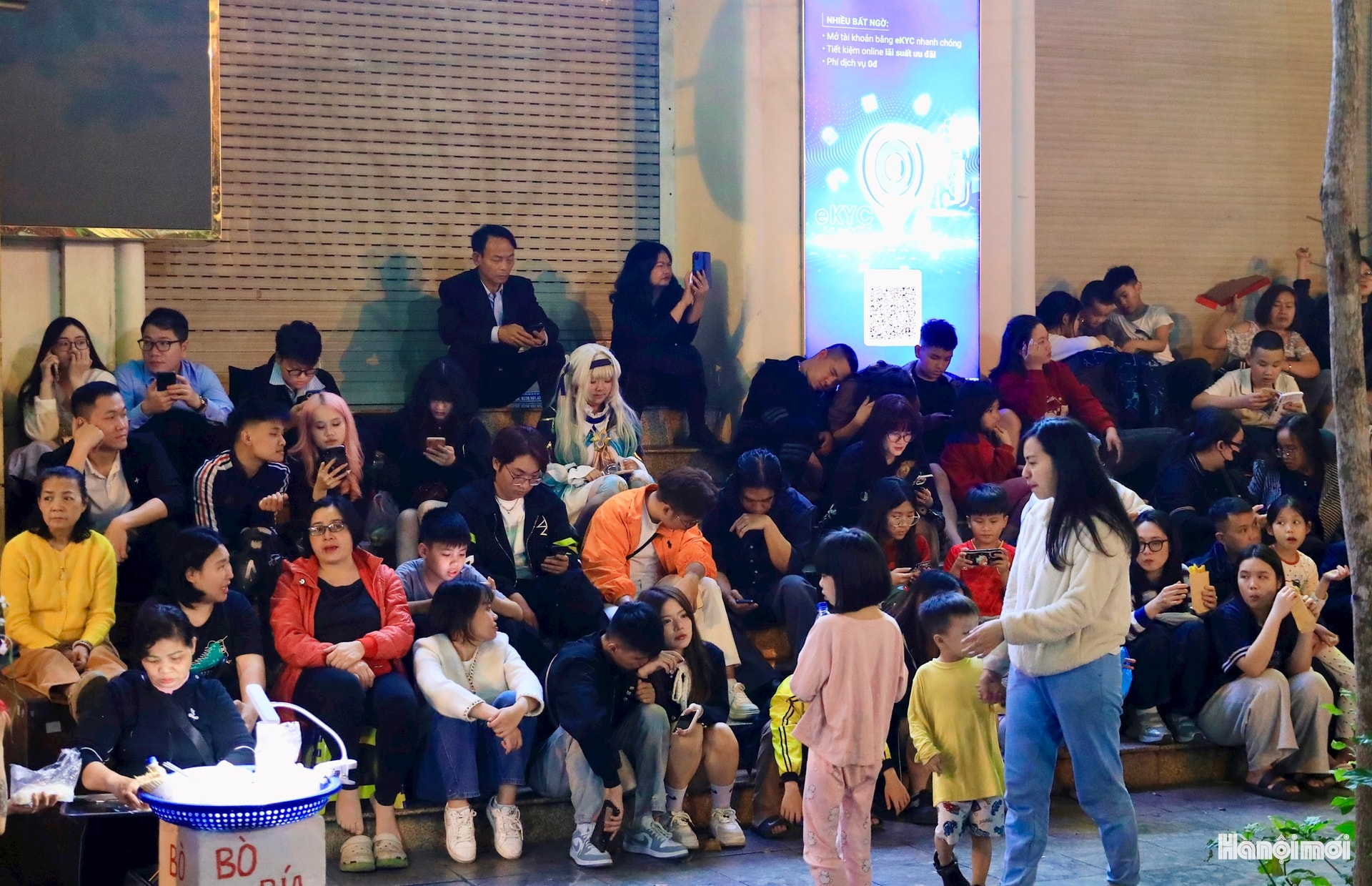 Khoảng 22h30, rất đông người dân đã có mặt tại khu vực hồ Hoàn Kiếm, phường Hoàn Kiếm để chờ xem pháo hoa.