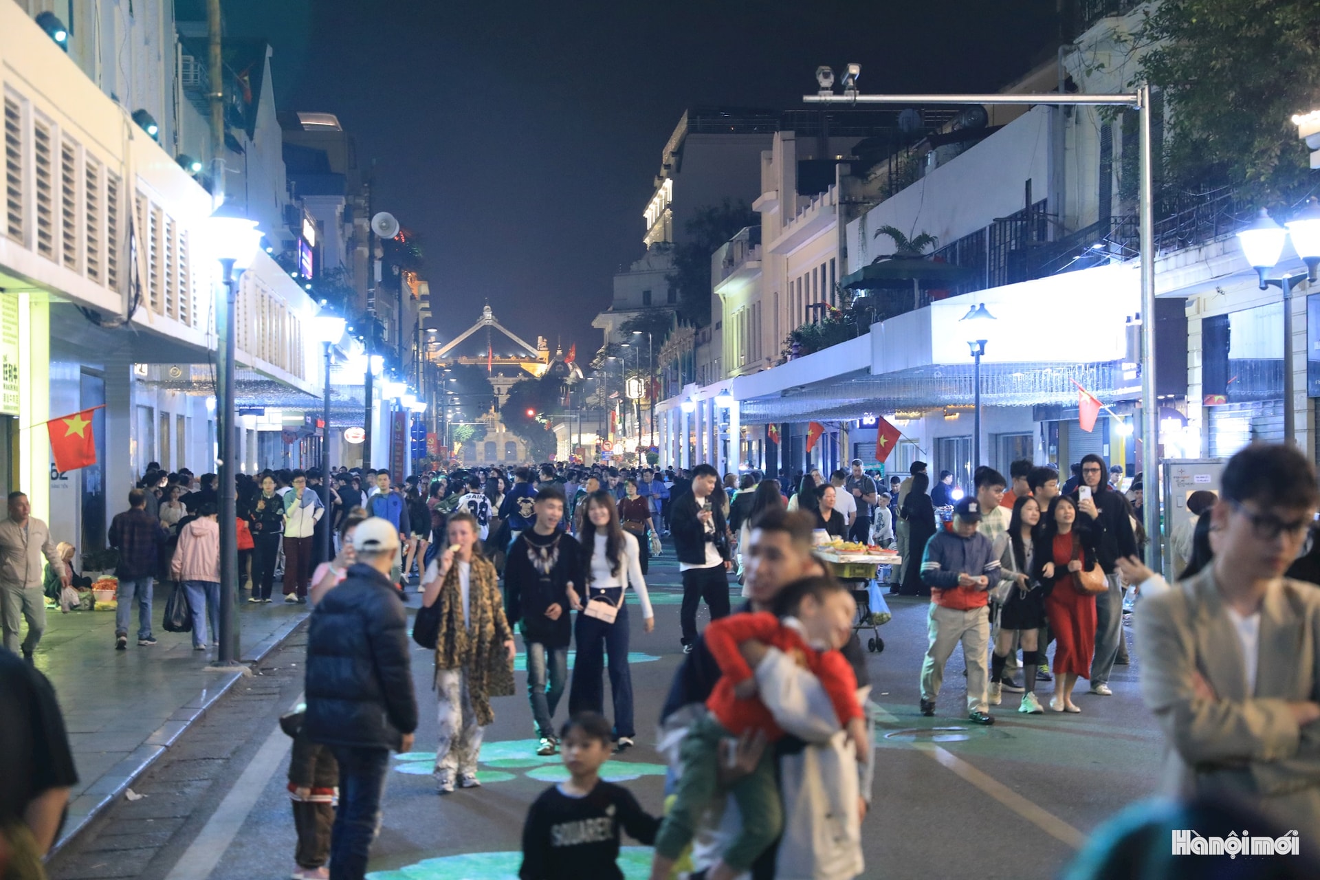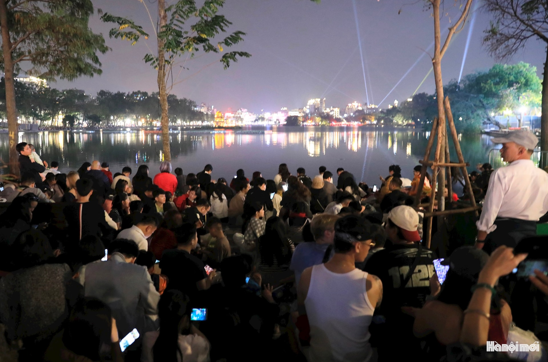 Dòng người không ngừng đổ về hồ Hoàn Kiếm chờ xem pháo hoa.