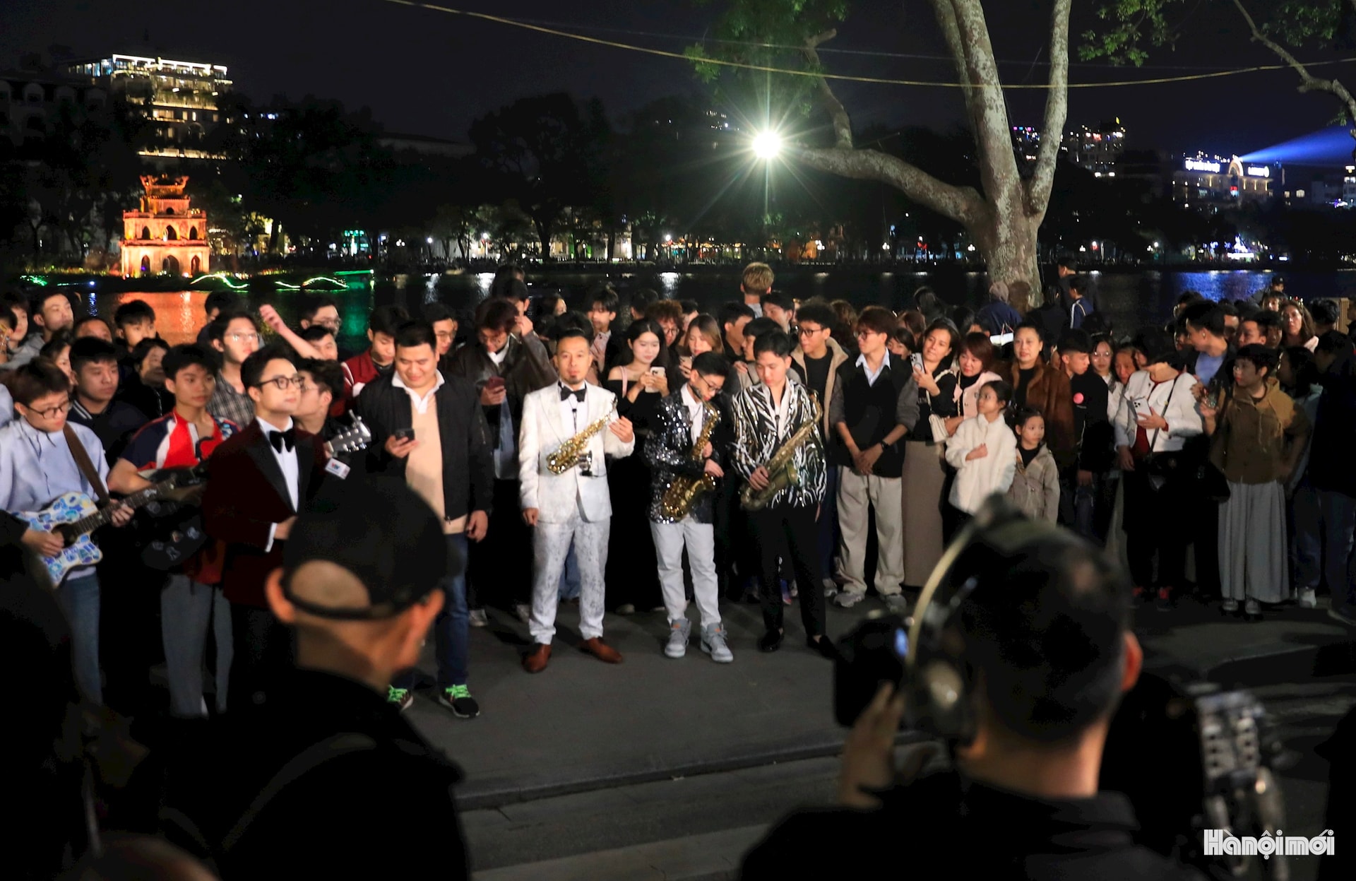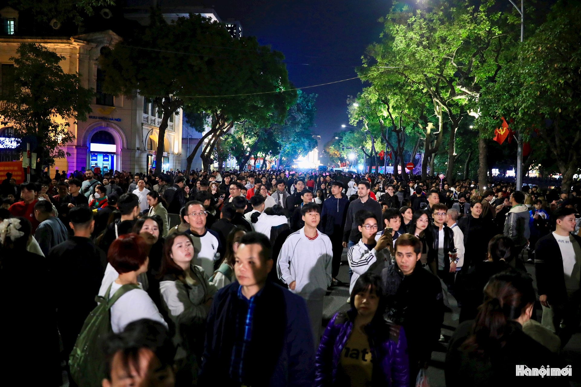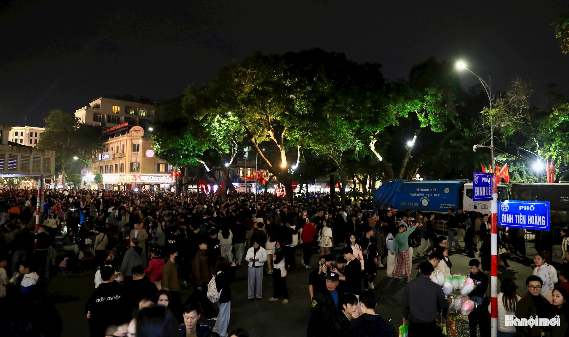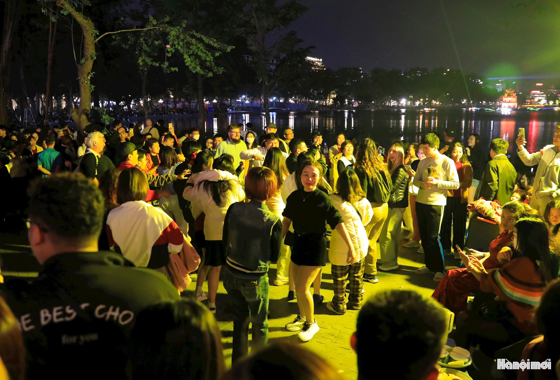 Hơn 21h, khu vực phố đi bộ hồ Hoàn Kiếm chật kín người.