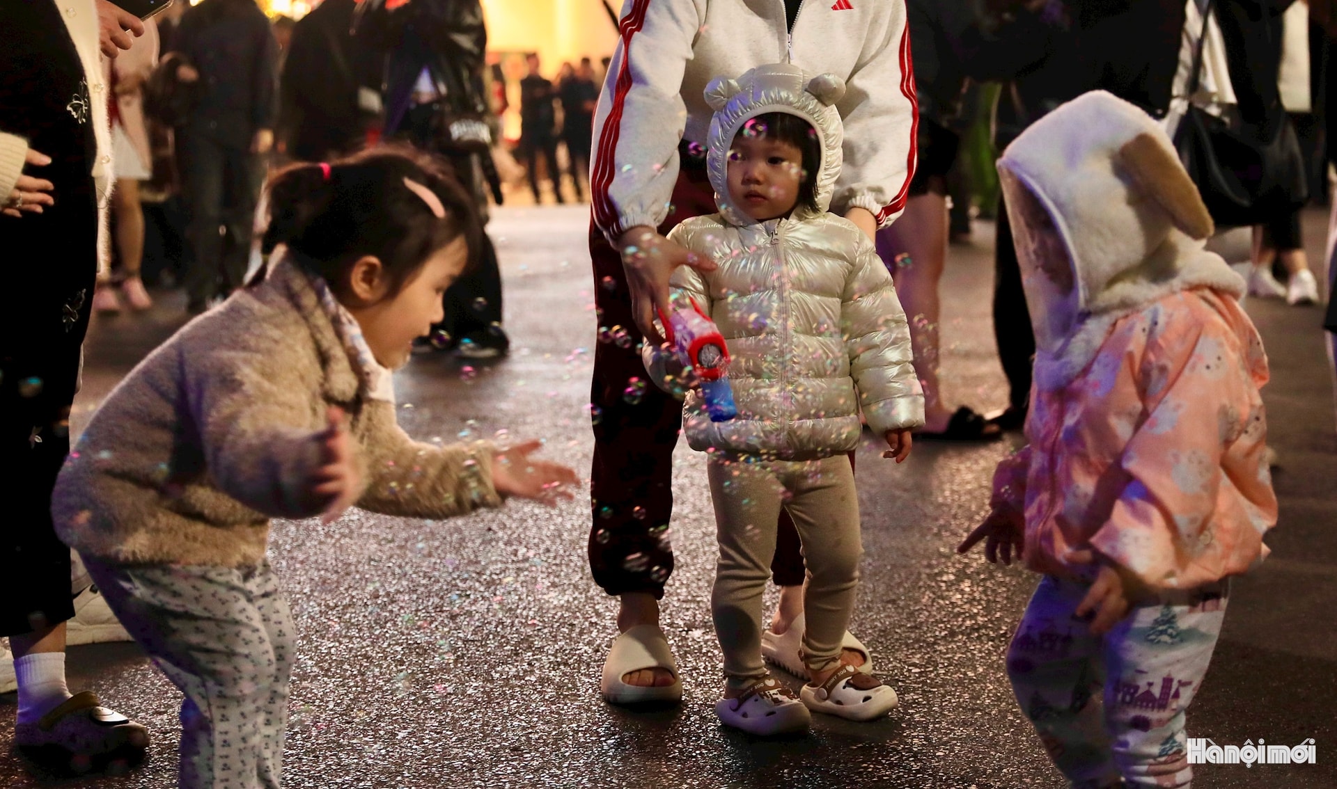 Các em nhỏ thích thú nô đùa trước thời khắc chuyển giao giữa năm cũ và năm mới.
