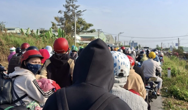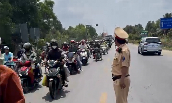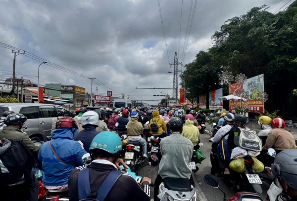 Chiều 22/2, những người dân từ các tỉnh Miền Tây Nam hối hả trở lại TP Hồ Chí Minh để cho kịp ngày làm việc đầu tiên của năm mới chen nhau qua địa bàn tỉnh Tây Ninh. Hàng chục ngàn các phương tiện, chủ yếu là xe máy với lỉnh kỉnh quà quê kèm theo con nhỏ, có cả thú cưng lần lượt trở lại TP Hồ Chí Minh qua ngỏ Tây Ninh khiến các tuyến đường trọng yếu bị ùn ứ.