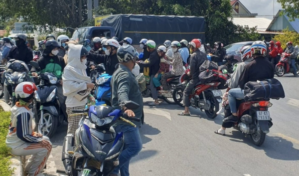 Nhiều phương tiện di chuyển từ sáng cho đến chiều mới đến được TP Hồ Chí Minh vì các tuyến quốc lộ qua tỉnh Tây Ninh quá tải. Thời tiết nắng gắt, người nhễ nhại mồ hôi nhưng các phương tiện chỉ di chuyển nhích từng mét một.
