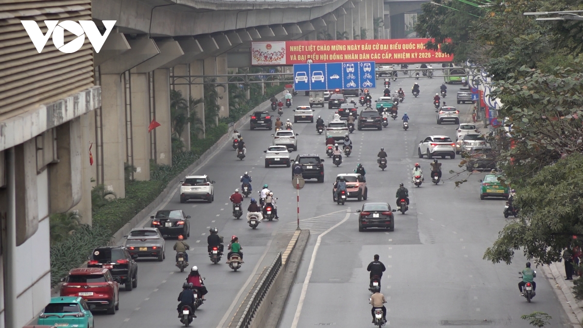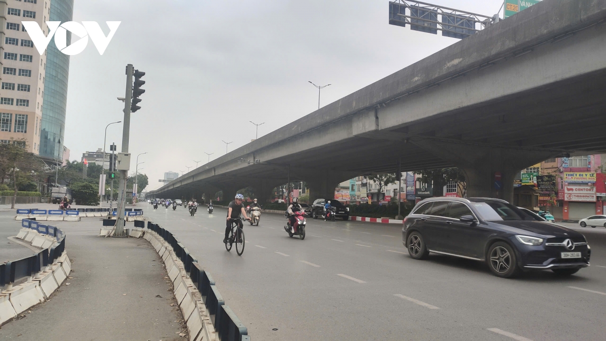 17h ngày 21/2, tại nhiều tuyến phố trung tâm Hà Nội như Nguyễn Trãi đến Ngã Tư Sở, các phương tiện lưu thông rất dễ dàng.
