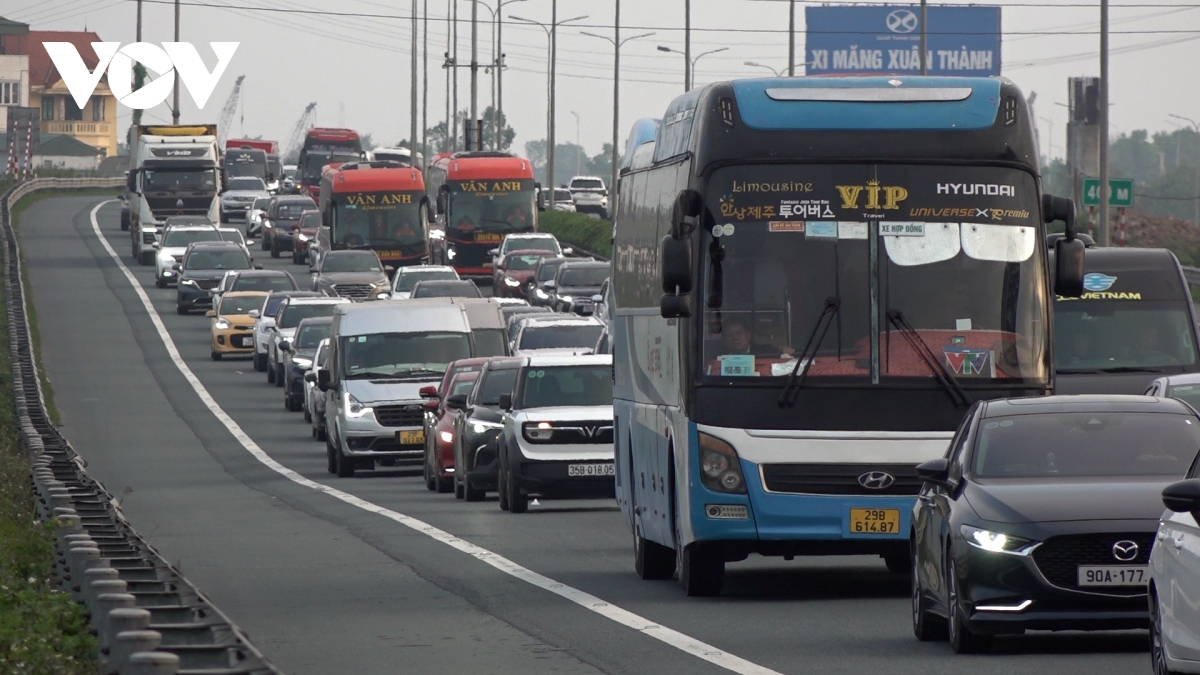 Tại khu vực cao tốc Pháp Vân - Cầu Giẽ hướng vào Hà Nội, lượng phương tiện tăng cao, có thời điểm ghi nhận tình trạng ùn ứ nhẹ.