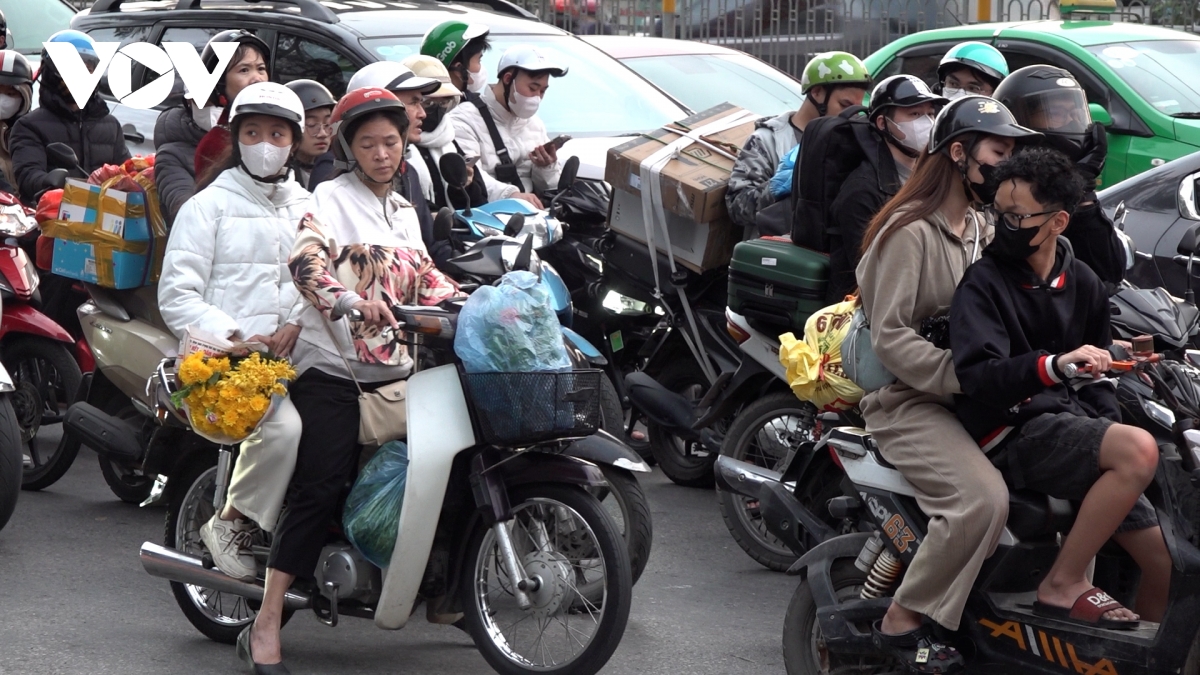 Ngày 21/2 (mùng 5 Tết), dù kỳ nghỉ còn hai ngày nhưng nhiều người từ các tỉnh, thành phố lân cận đã bắt đầu quay lại Thủ đô.