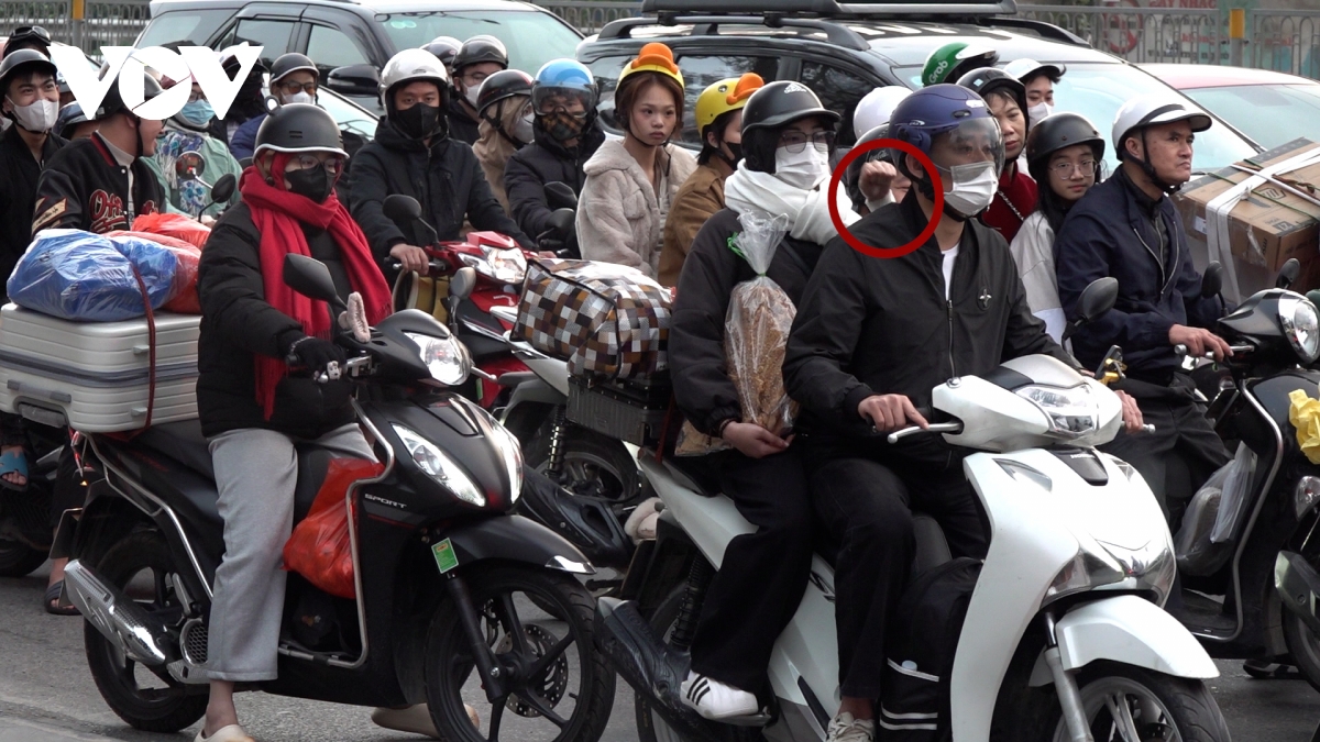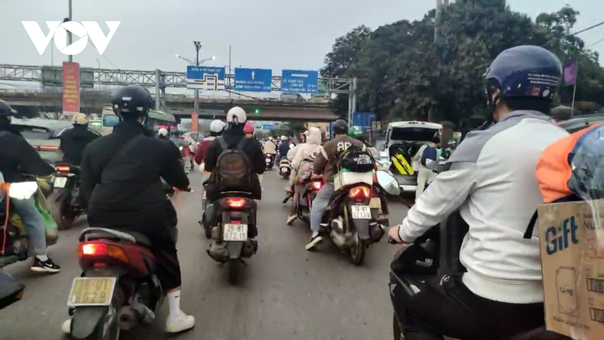 Khu vực từ Tứ Hiệp đến Pháp Vân ghi nhận lượng phương tiện đông đúc, xảy ra tình trạng ùn tắc kéo dài tầm 1km.
