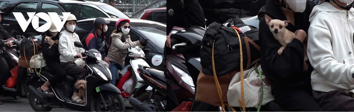 Không chỉ có đồ đạc, những chú thú cưng cũng theo xe về lại thành phố sau kỳ nghỉ Tết.
