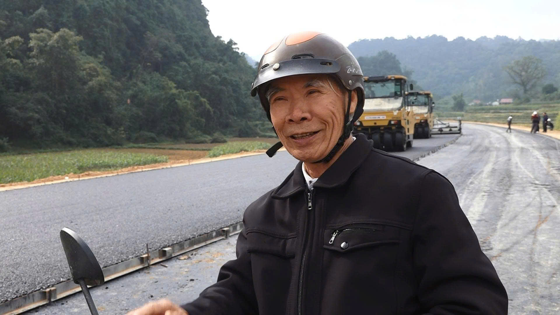 Ông Nông Xuân Huyền, xóm Đoỏng Lẹng, xã Đông Khê vui mừng khi cao tốc Đồng Đăng - Trà Lĩnh đã thảm bê tông nhựa một số phân đoạn.