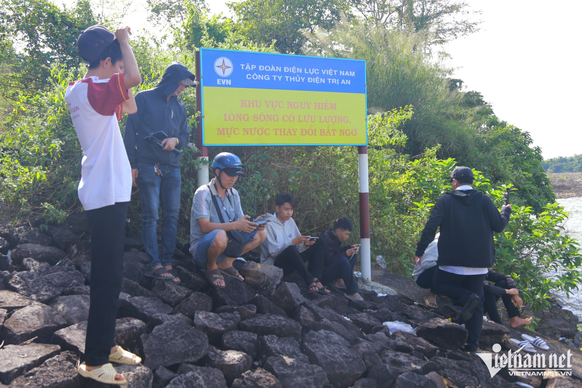 Mặc dù khu vực đã được Công ty Thủy điện Trị An đặt biển cảnh báo, nhiều người vẫn bất chấp nguy hiểm tiếp cận chân đập để xem xả lũ.