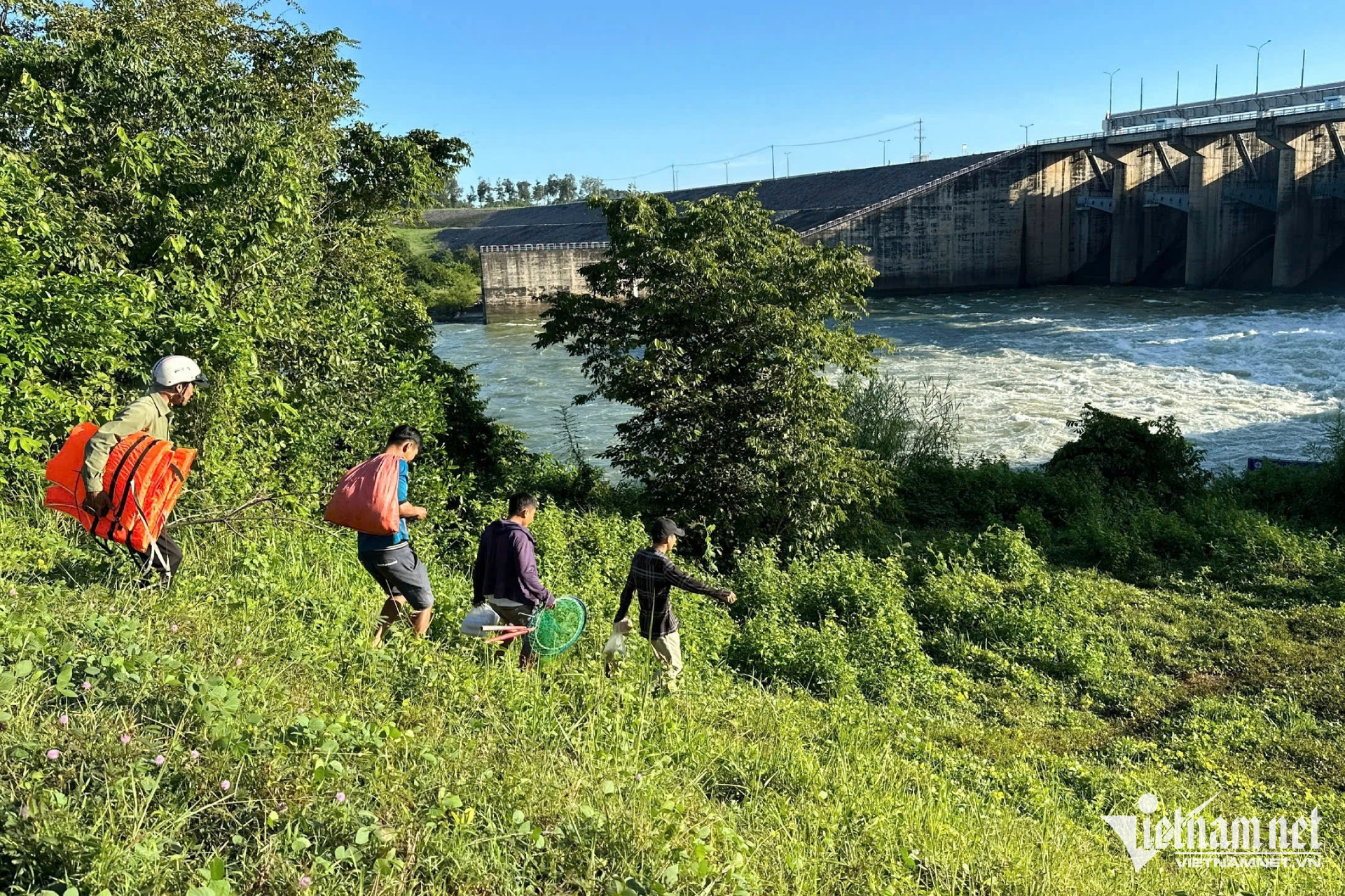 Một số người khác mang theo lưới, chài với hy vọng dòng nước từ cửa xả chảy mạnh sẽ cuốn cá dạt về hạ du, may mắn thì “gặp lộc”.