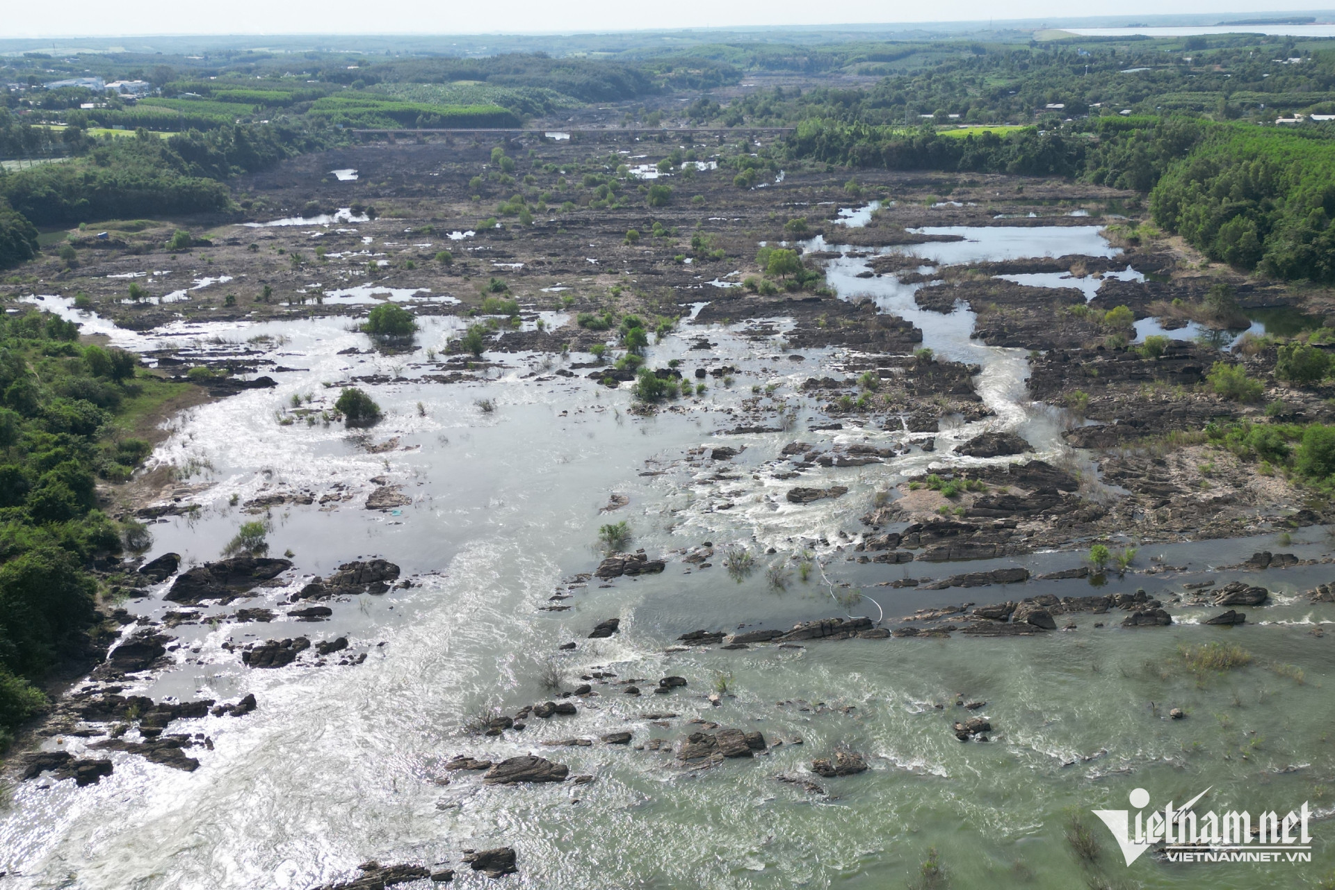 Anh Dương (TPHCM) vừa giơ điện thoại livestream vừa nói lớn: “Lâu lắm tôi mới có dịp xem lại cảnh này. Nước đổ cuồn cuộn, tiếng ầm ầm nghe rợn người nhưng rất choáng ngợp”.