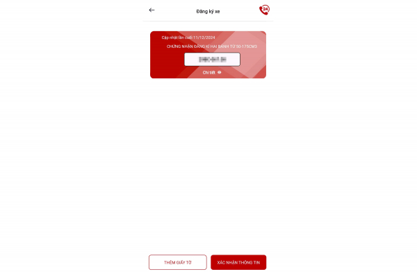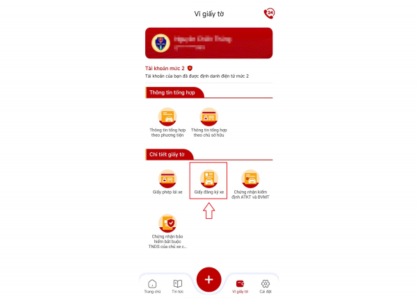 Vào mục "Ví giấy tờ", chọn mục "Giấy đăng ký xe" và nhập passcode.