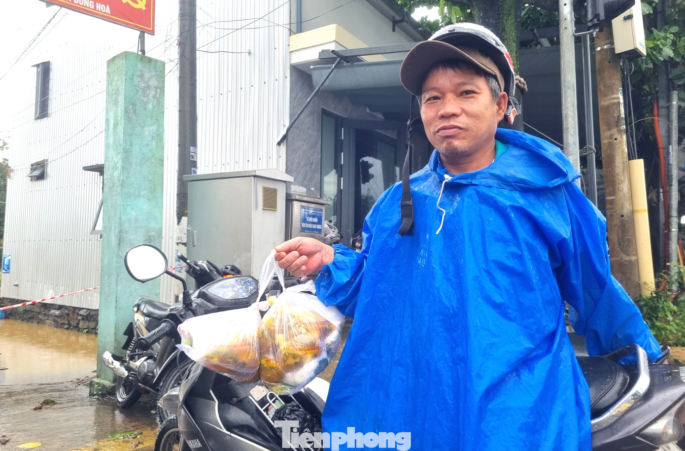 Anh Lê Văn Hùng mang thức ăn đến tiếp tế cho người thân ở thôn Đông Hòa (cũ), phường Hòa Xuân nhưng chờ gần 3 tiếng đồng hồ vẫn không có ghe thuyền để gửi vào. "Khoảng 3 giờ sáng nước ngập cao hơn 1 mét. Tôi mang đồ ăn qua tiếp tế nhưng chờ từ sáng tới giờ chưa có ghe, bè nào ra cả. Nước xoáy lắm, thuyền không chắc chắn đi vào không được", anh nói.