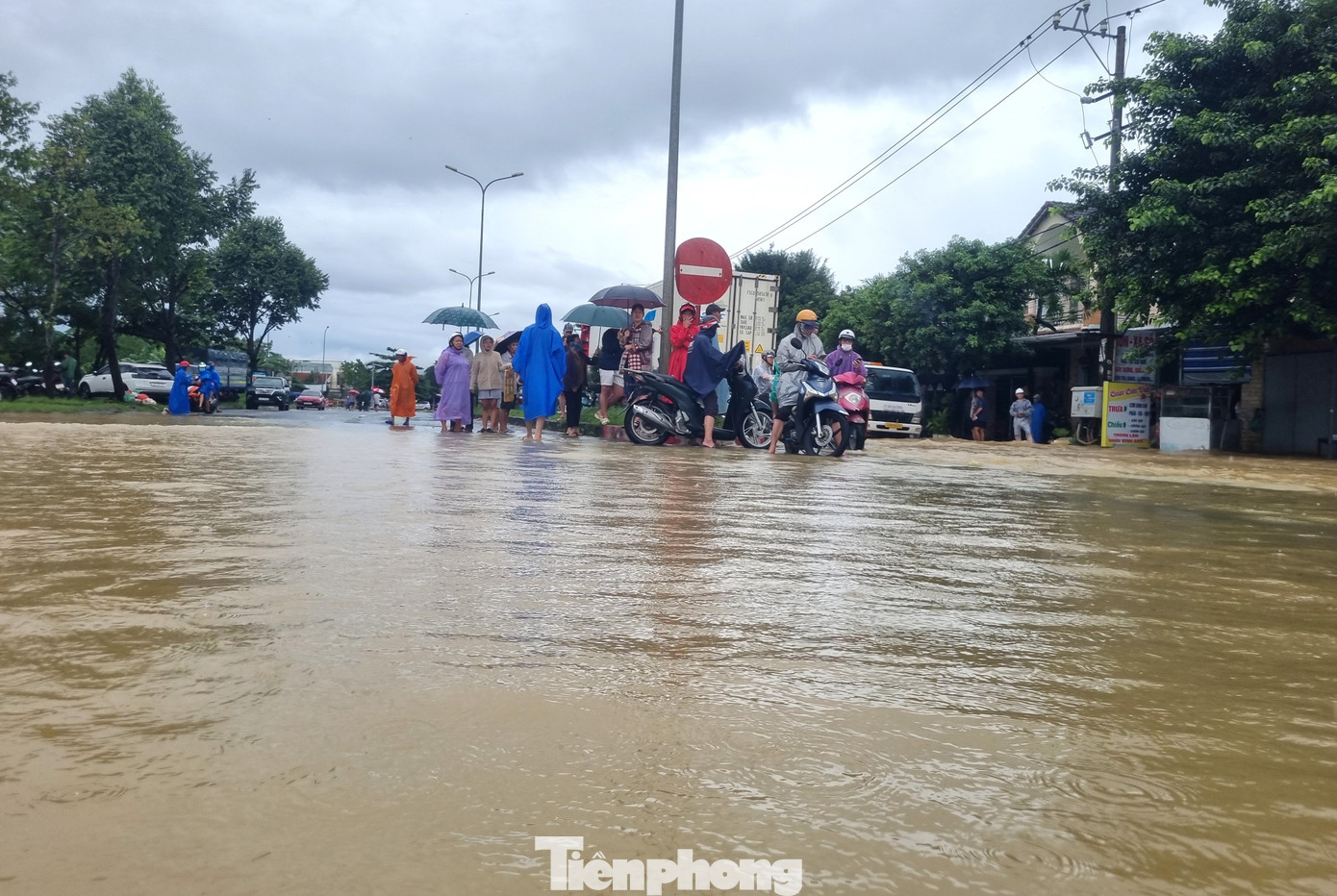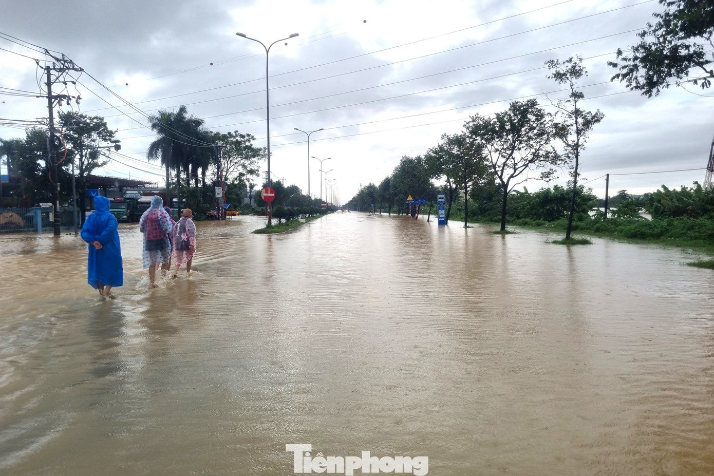 Đoạn quốc lộ 1A qua phường Hòa Xuân nước tràn đường, nhiều người quá nóng lòng đã lội bộ đến đường dẫn vào các khu dân cư ngóng ghe thuyền để gửi đồ tiếp tế cho người thân.
