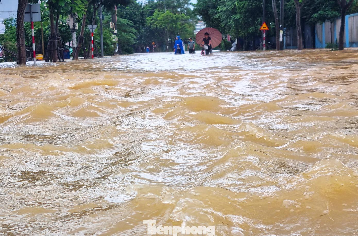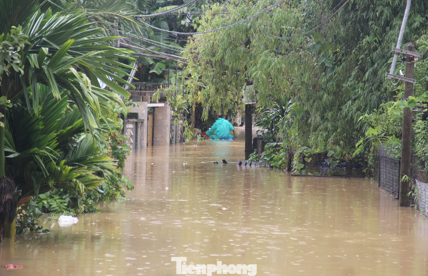 Ngày 30/10, nhiều nơi ở Đà Nẵng tiếp tục ngập sâu. Trong đêm nước lũ tấn công hàng loạt nhà dân. Nước lũ cuộn chảy qua tuyến quốc lộ 1A và những đường xung quanh. Chỉ sau một đêm, các khu dân cư ở phường Hòa Xuân bị ngập nặng. Ảnh: Thanh Hiền.