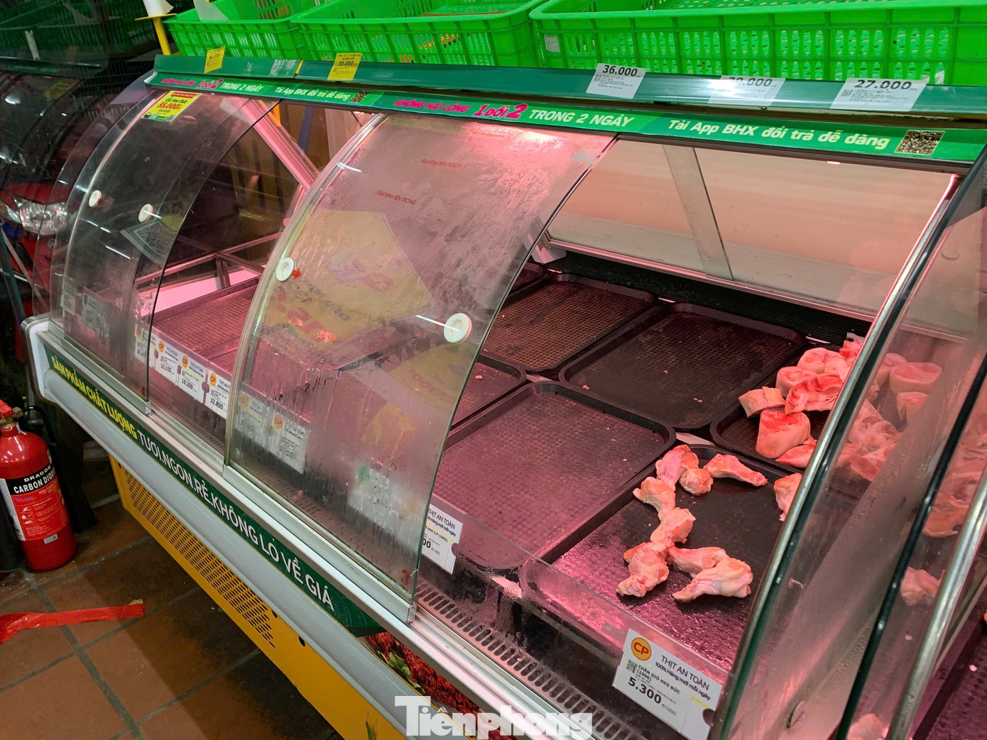 Theo nhân viên bán hàng, các quầy trưng bày cá, thịt và rau củ quả đã hết từ rất sớm. Nhiều mặt hàng vừa được bổ sung lên kệ đã nhanh chóng được người dân mua hết, đặc biệt là thực phẩm tươi sống và đồ khô tiện bảo quản.