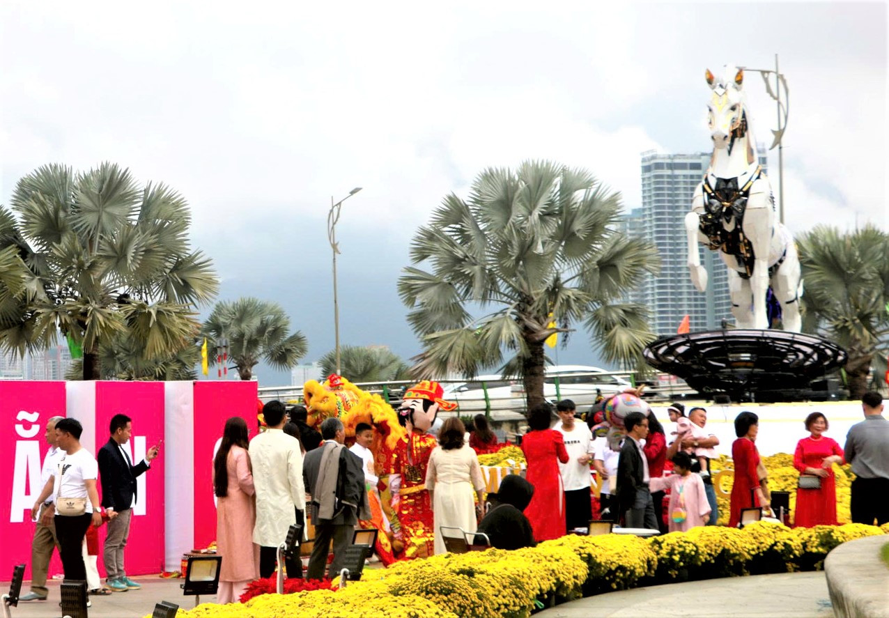 Năm nay thành phố trang trí đường hoa đẹp và ấn tượng, đặc biệt là các linh vật ngựa được thiết kế hoành tráng, thu hút đông đảo người dân và du khách đến tham quan, check-in.