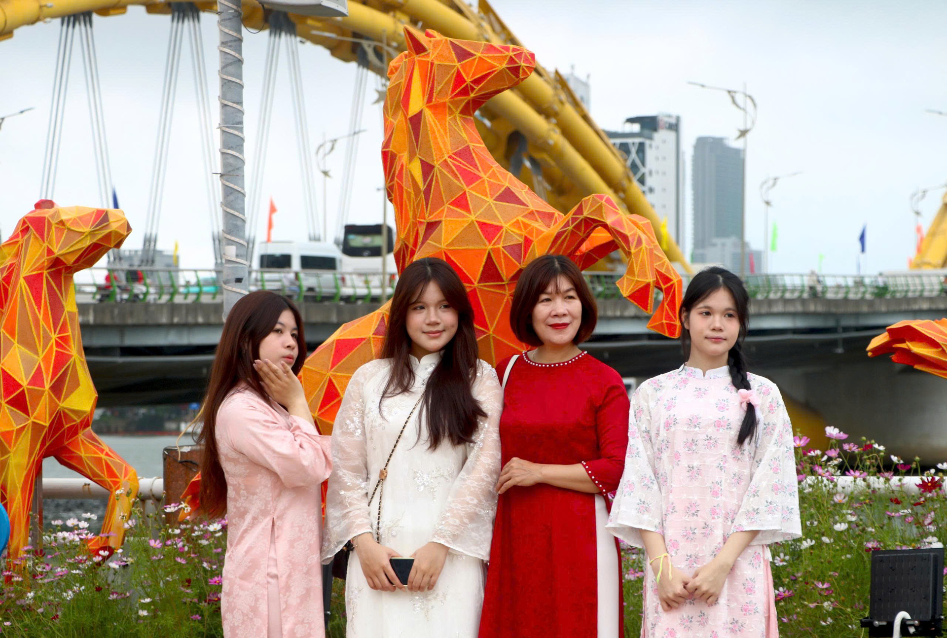 Du xuân tại đường hoa Bạch Đằng từ sáng sớm, chị Nguyễn Thanh Hồng Ân (phường Hòa Cường) cho biết, không khí đầu năm rộn ràng, ai cũng vui vẻ, háo hức chụp hình, dạo chơi và tận hưởng trọn vẹn sắc xuân.