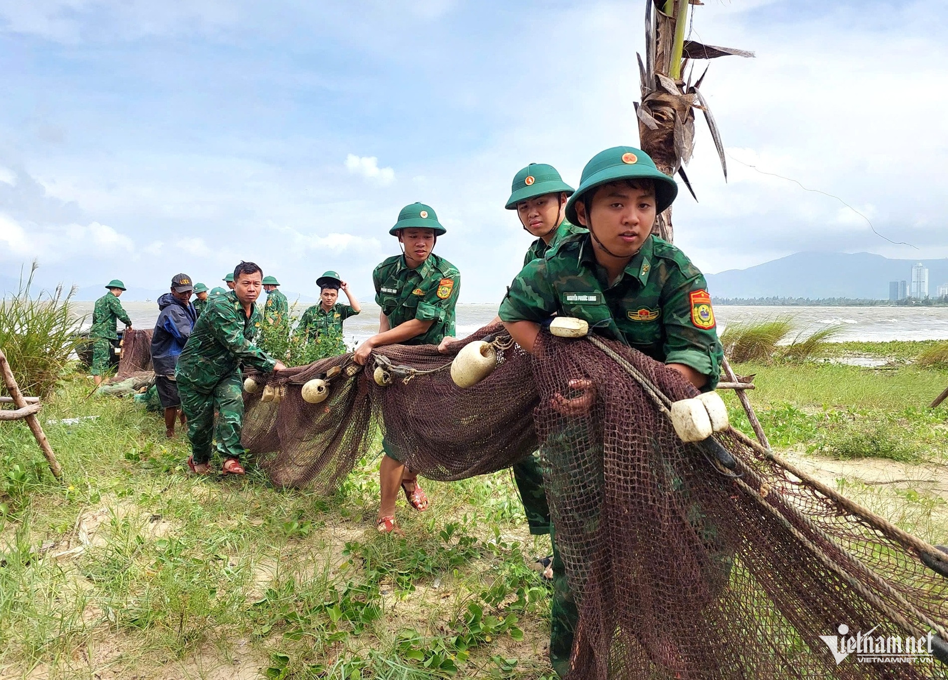 Đồn Biên phòng Phú Lộc đã huy động gần 30 cán bộ, chiến sĩ hỗ trợ ngư dân đưa ngư, lưới cụ vào bờ dọc tuyến đường biển Nguyễn Tất Thành.