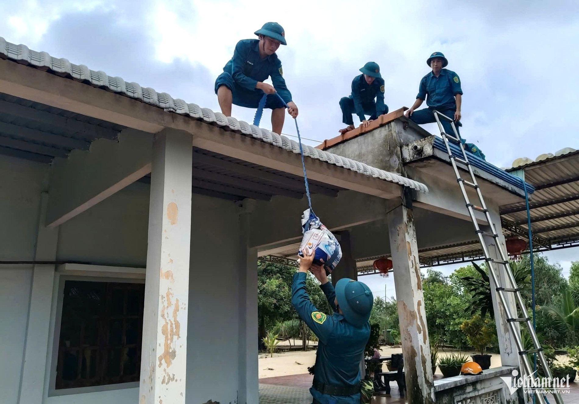 Các lực lượng dân quân cũng được huy động giúp dân chằng chống nhà cửa, neo đậu tàu thuyền an toàn.
