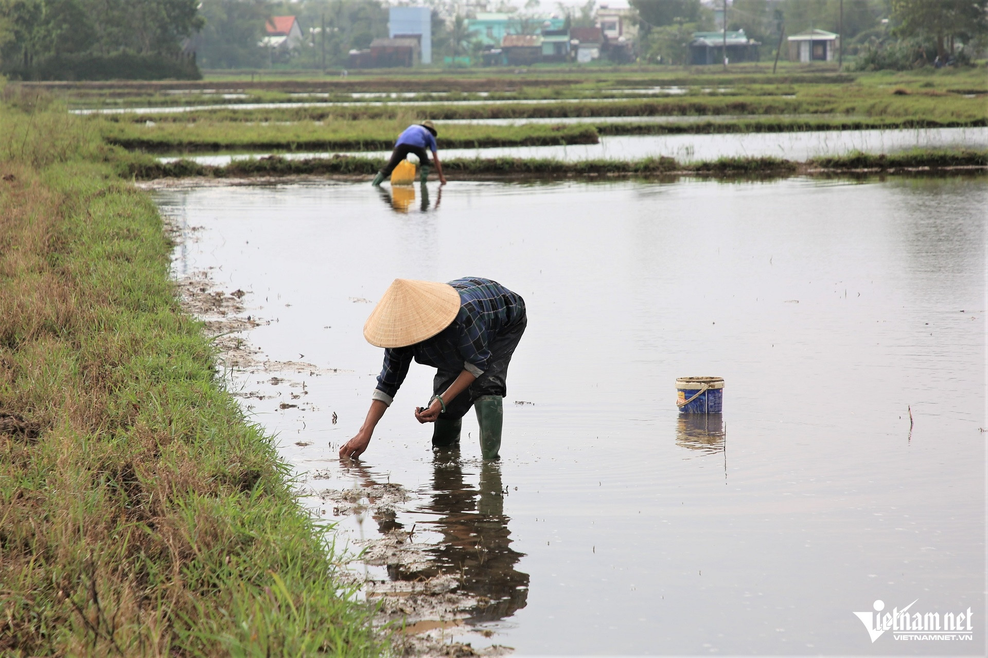 Những ngày cuối năm, tại nhiều cánh đồng ở các xã Thăng An, Thăng Điền, Xuân Phú, Quế Sơn Trung… người ta dễ dàng bắt gặp cảnh dân mang ủng, xách xô nhựa, khom lưng lội bùn nhặt từng con ốc bươu vàng. Có người đi từ sáng sớm đến chiều muộn, tranh thủ bắt càng nhiều càng tốt để bán.