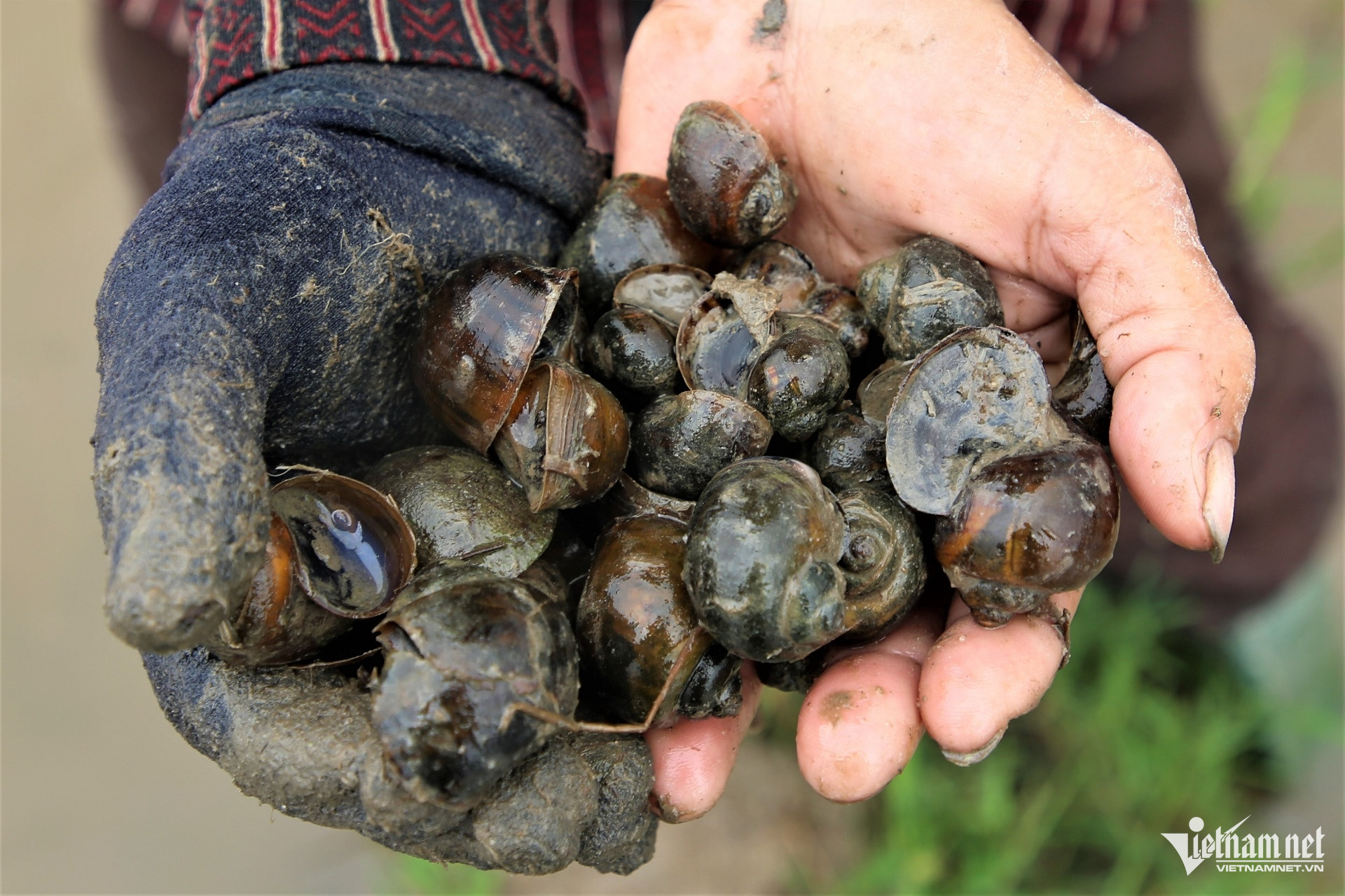 “Ốc rửa sạch chở đi bán giá 5.000 đồng/kg. Nghỉ trưa xong, chiều lại ra đồng bắt tiếp. Ai còn sức, ban đêm soi đèn bắt còn nhiều hơn”, ông Lanh nói.