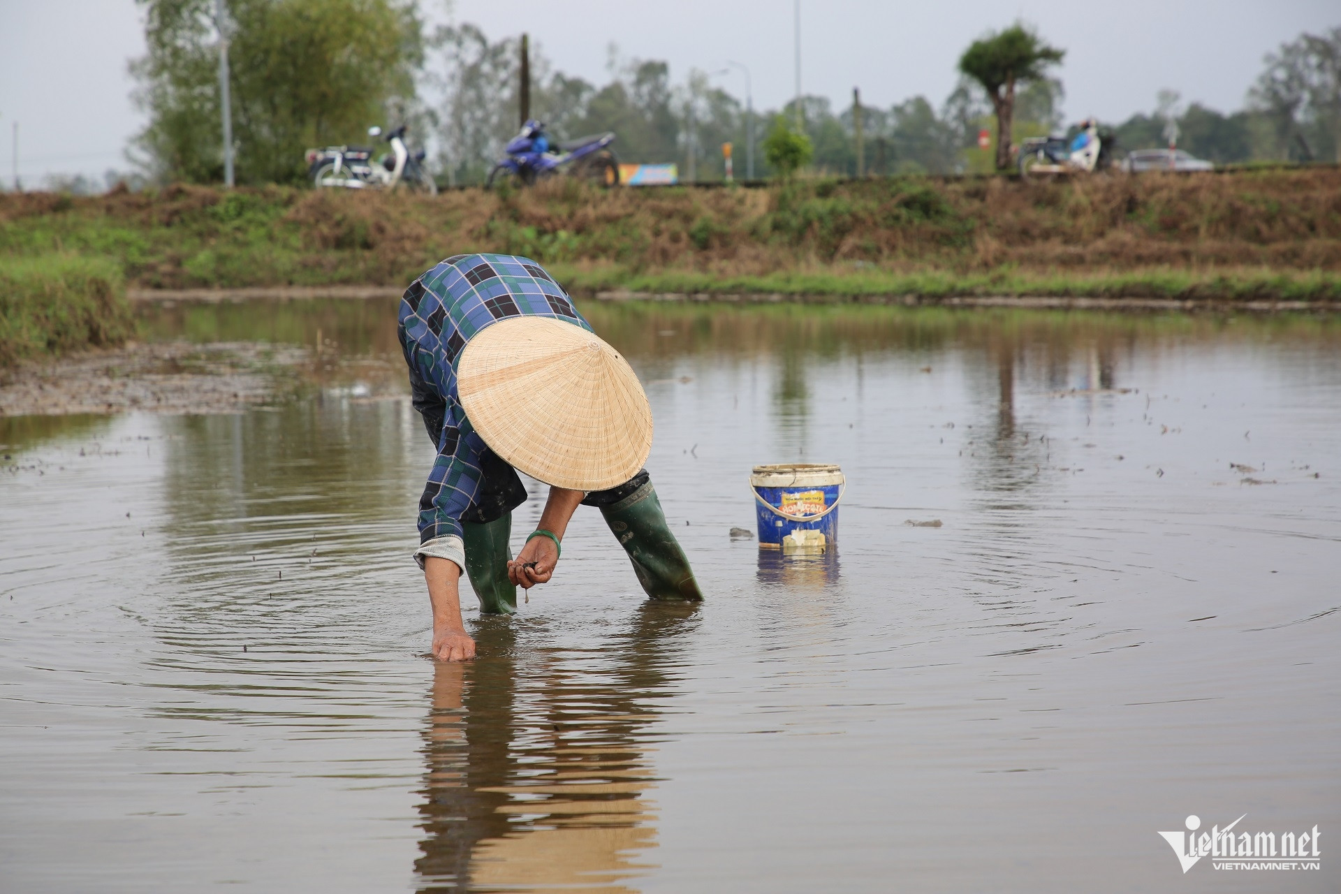Lội bùn, cúi người nhặt từng con ốc bươu vàng, nhiều người dân kiếm được vài trăm nghìn đồng mỗi ngày lúc nông nhàn