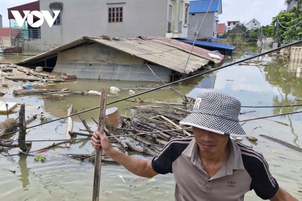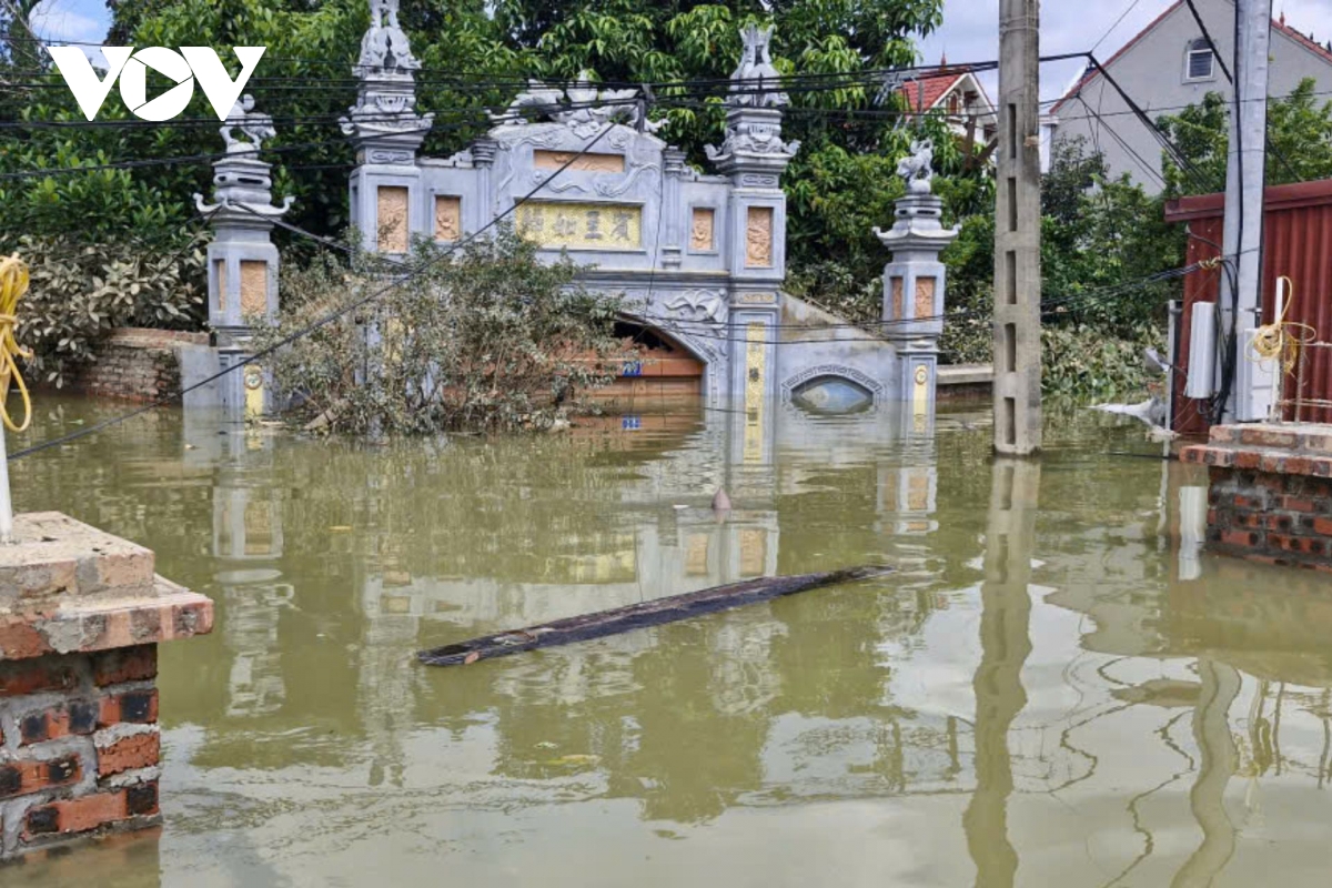 Tình trạng tương tự cũng xảy ra với gia đình anh Vương Xuân Kiên ở xóm 6, thôn Ngô Đạo, xã Đa Phúc, Hà Nội. Anh cho biết, thôn Ngô Đạo so với đê Trương ương là bên ngoài phía sông. Nhưng bên ngoài sông lại có một tuyến đê khác gọi là đê Quai, bao quanh toàn thôn. Khu vực này vốn trũng thấp hơn so với đê Trung ương, nên khi nước sông dâng, nước tràn qua đê Quai vào làng. Đến nay, dù nước ngoài sông đã rút cạn nhưng trong làng vẫn không thoát được, do đê bao giữ lại.