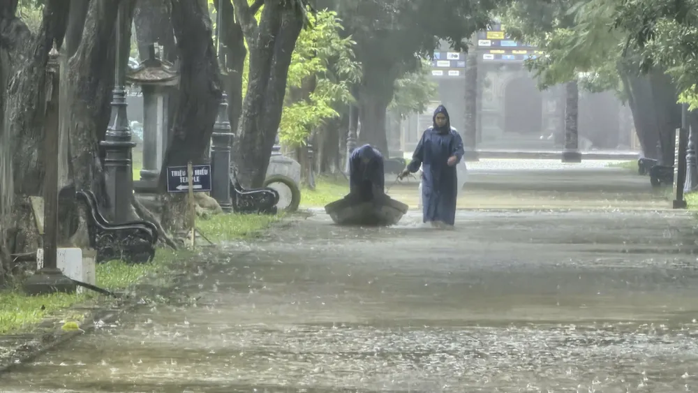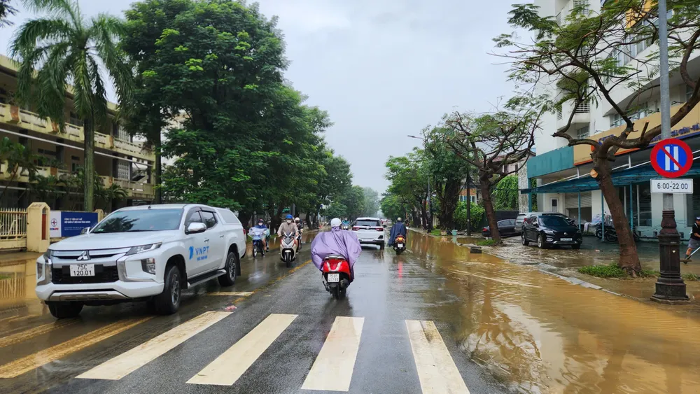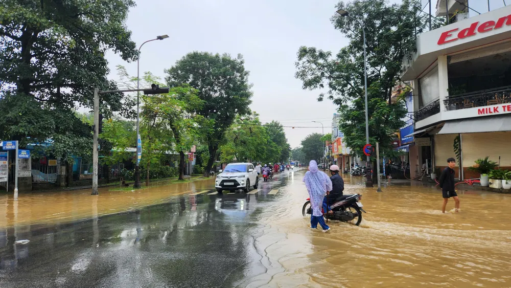 Nhiều tuyến đường tại Kinh thành Huế đang ngập sâu.