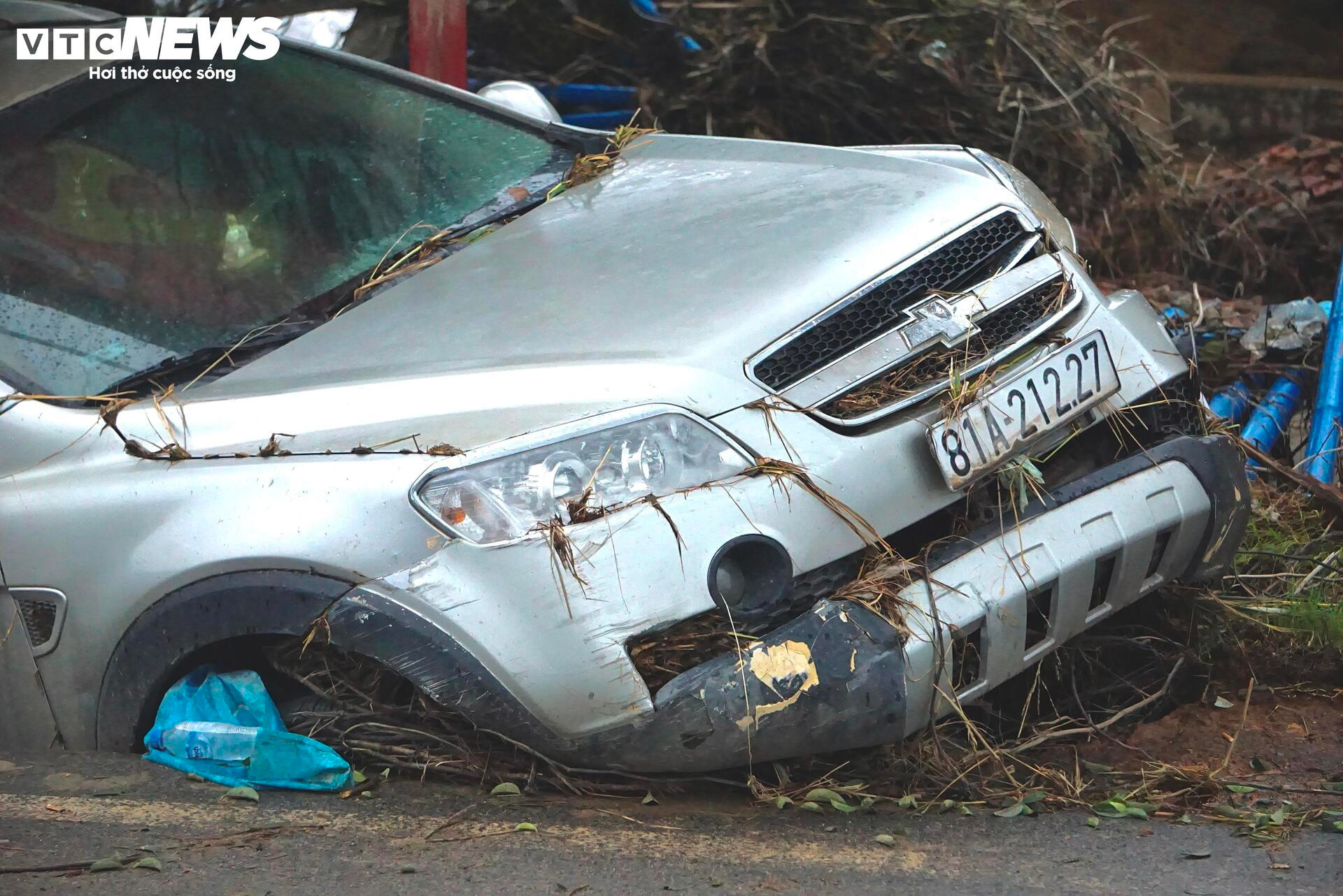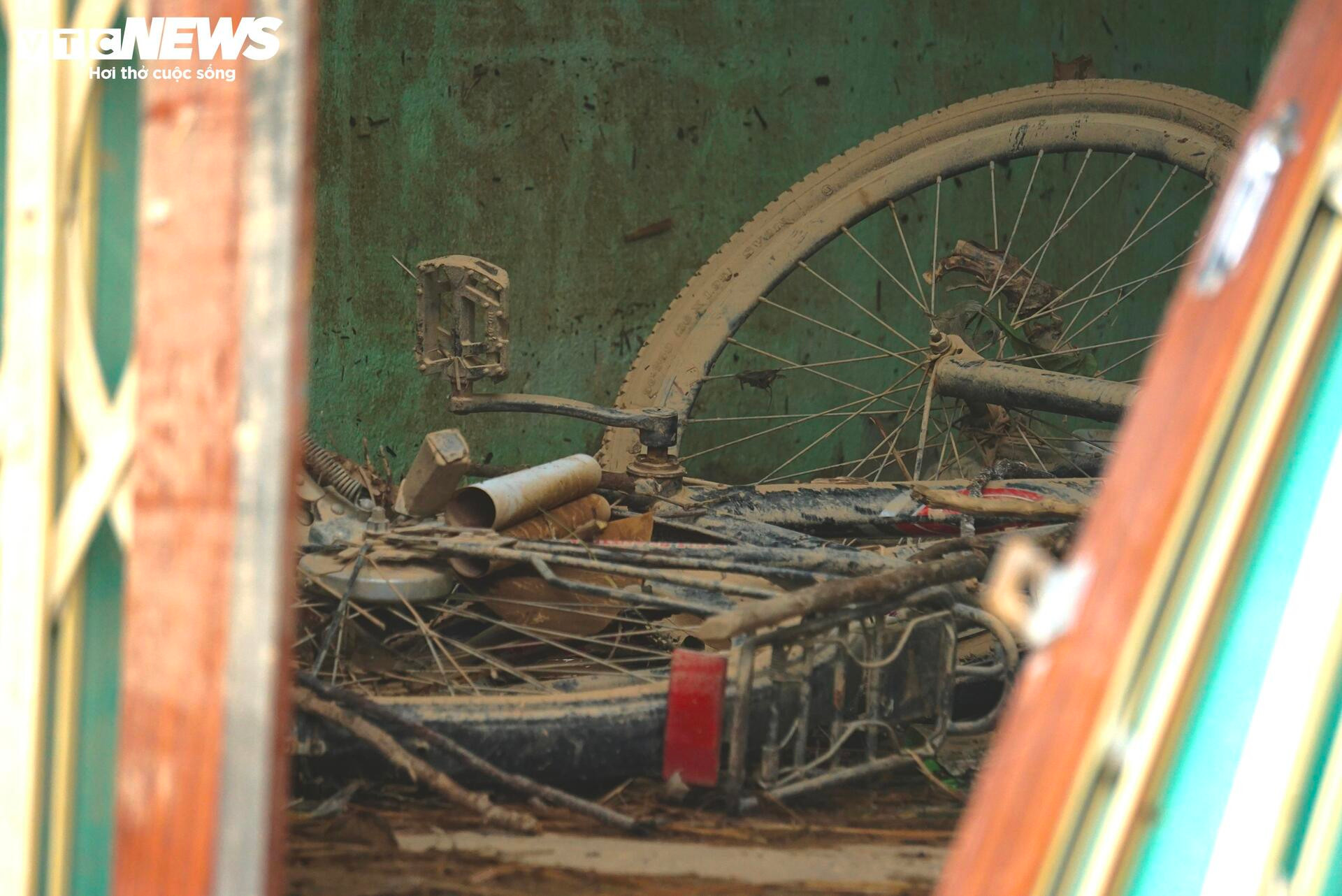 Những ngôi nhà nằm sập xuống như bị ai đó bẻ đôi. Vách gỗ thâm đen, mái tôn vặn xoắn, bàn thờ tổ tiên nằm lẫn trong bùn và gạch vụn. Không một tiếng người. Không cả tiếng chó sủa. Chỉ có tiếng dép bì bõm của những chủ nhân đang cố bới từng món đồ đã biến dạng mà có khi chính họ cũng không chắc còn nhận ra.