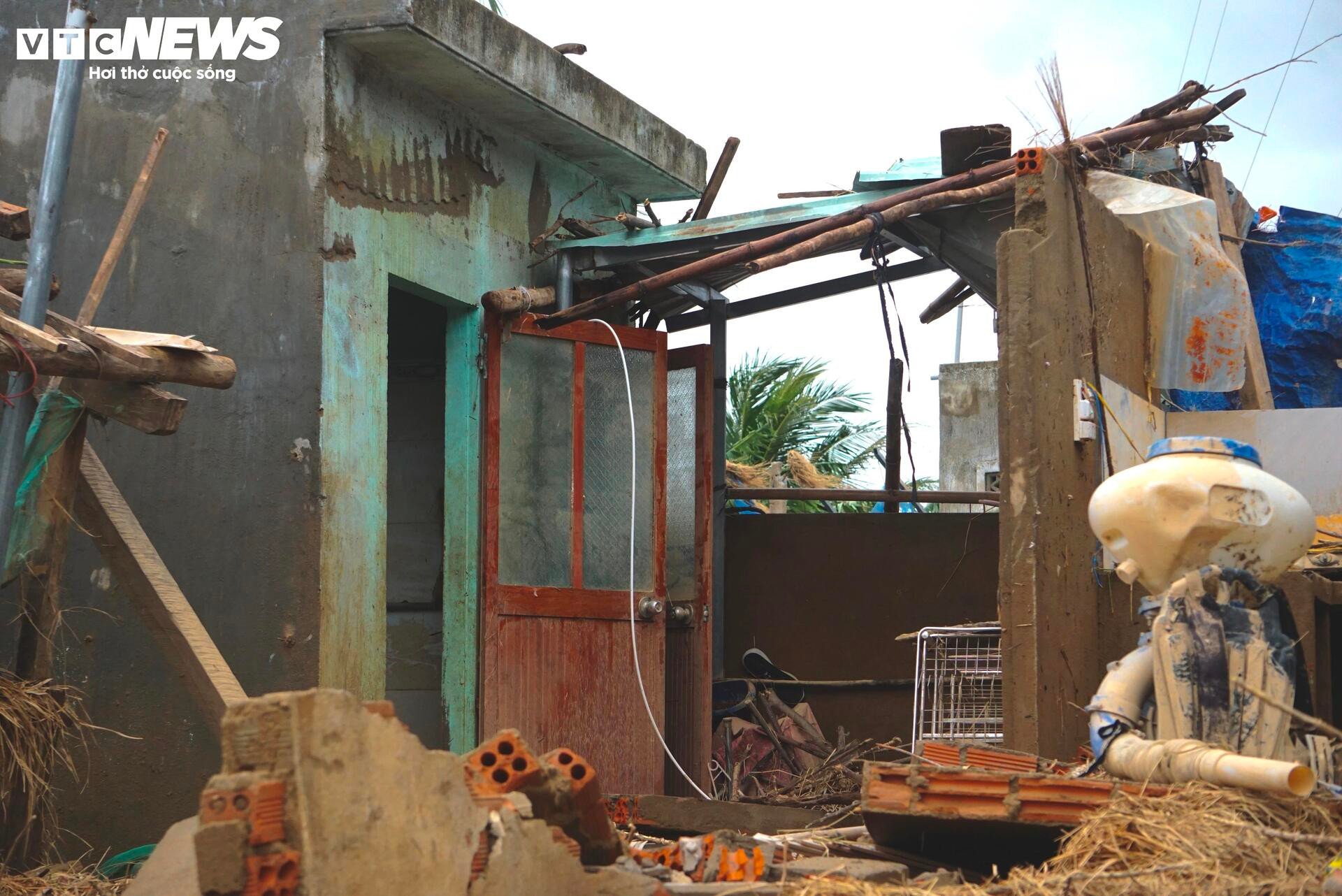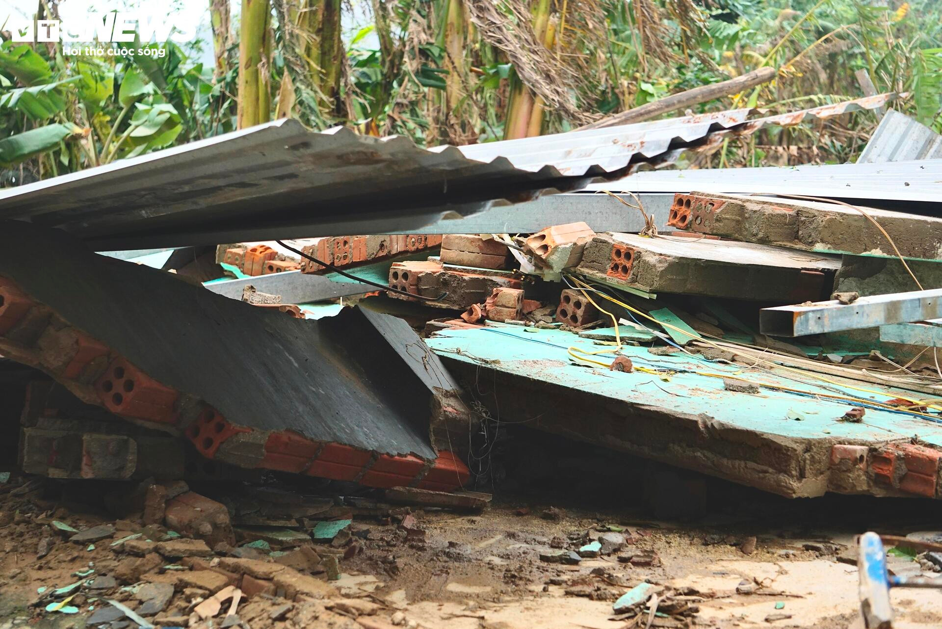 Căn nhà đổ nát dưới chân cũng được vợ chồng ông cất bằng tiền vay mượn hơn 10 năm trước. Từng là niềm hãnh diện của ông Quang khi có nơi an cư kiên cố cho vợ con, giờ tất cả là đống đổ nát.