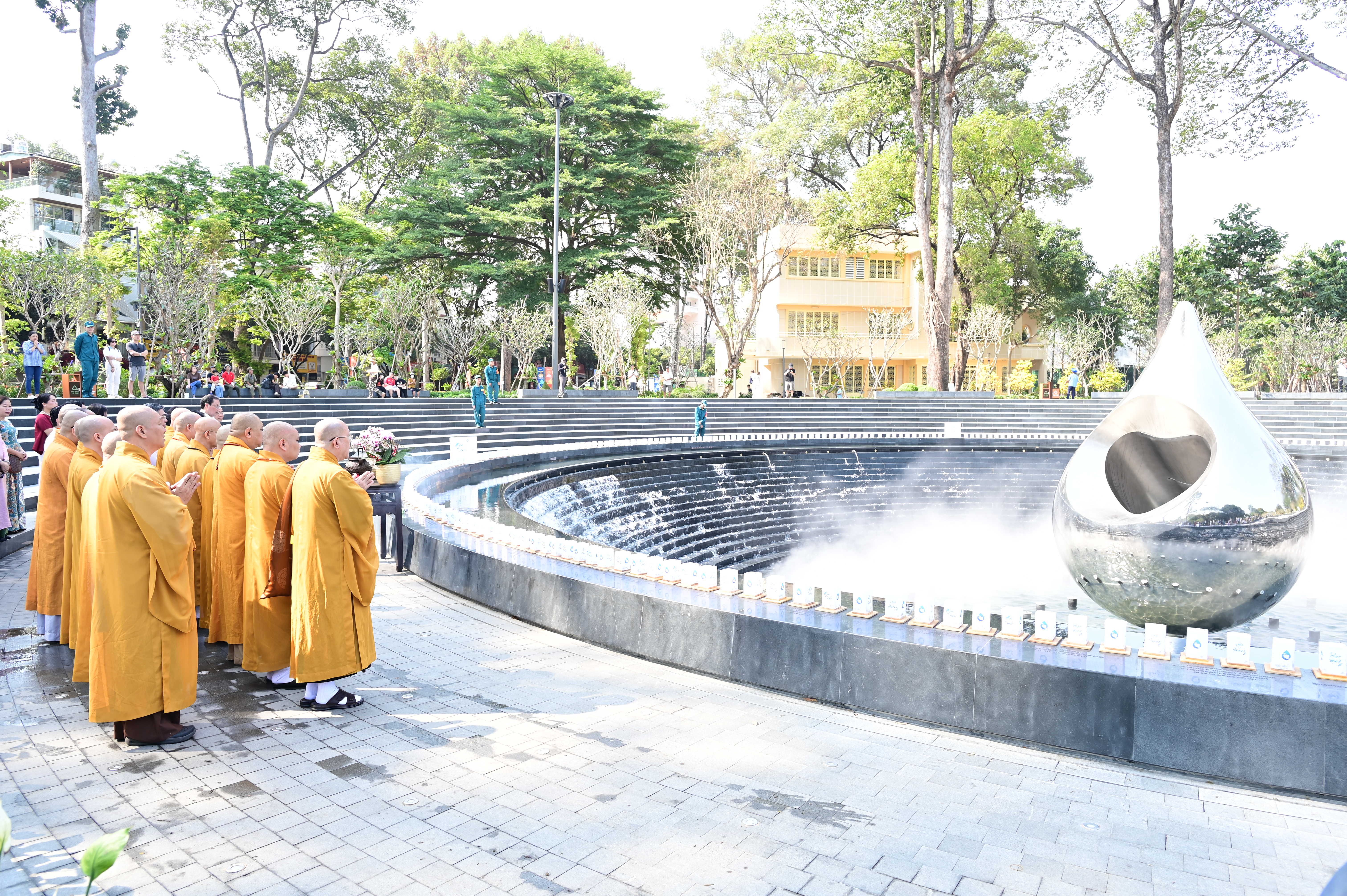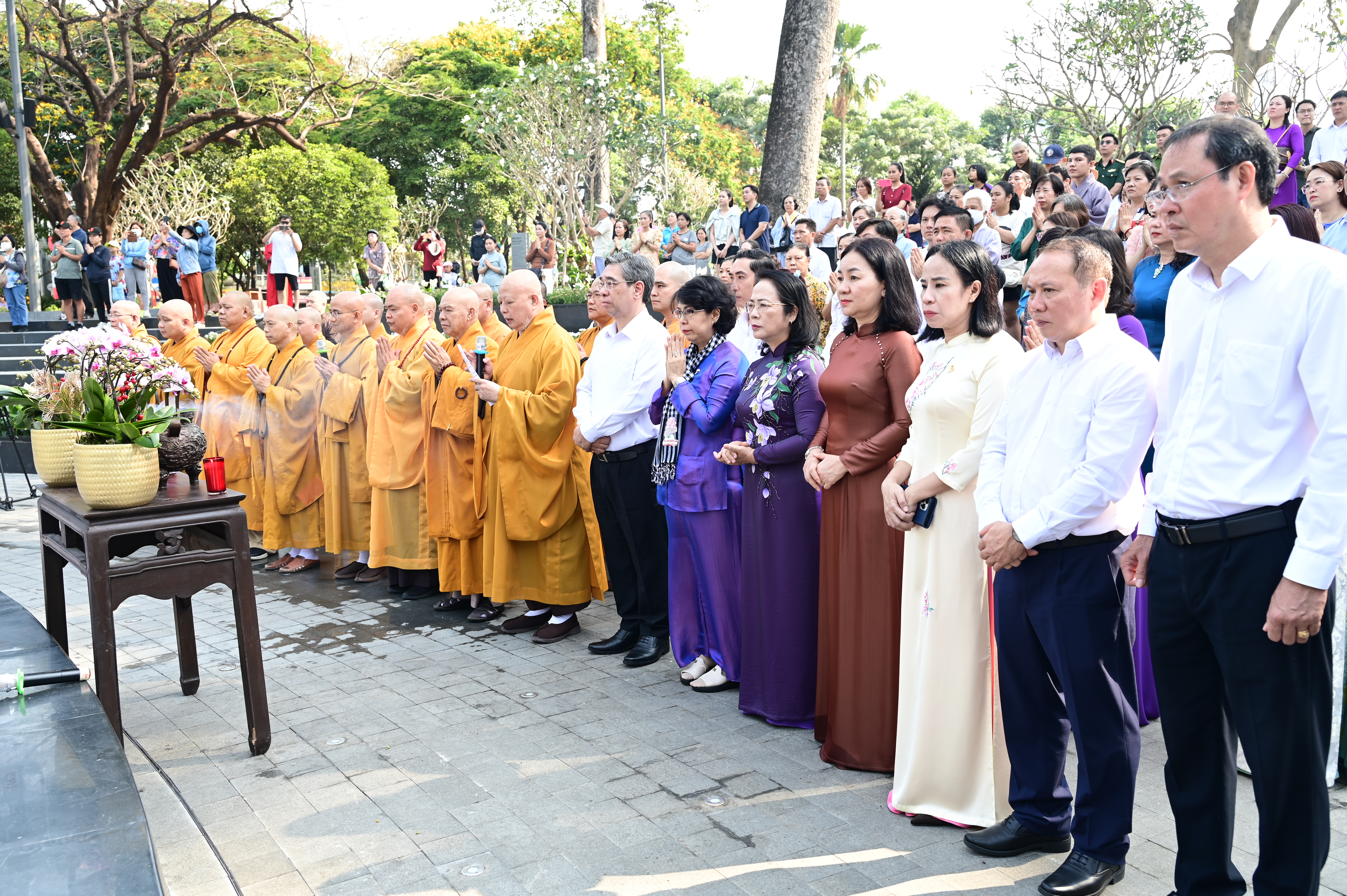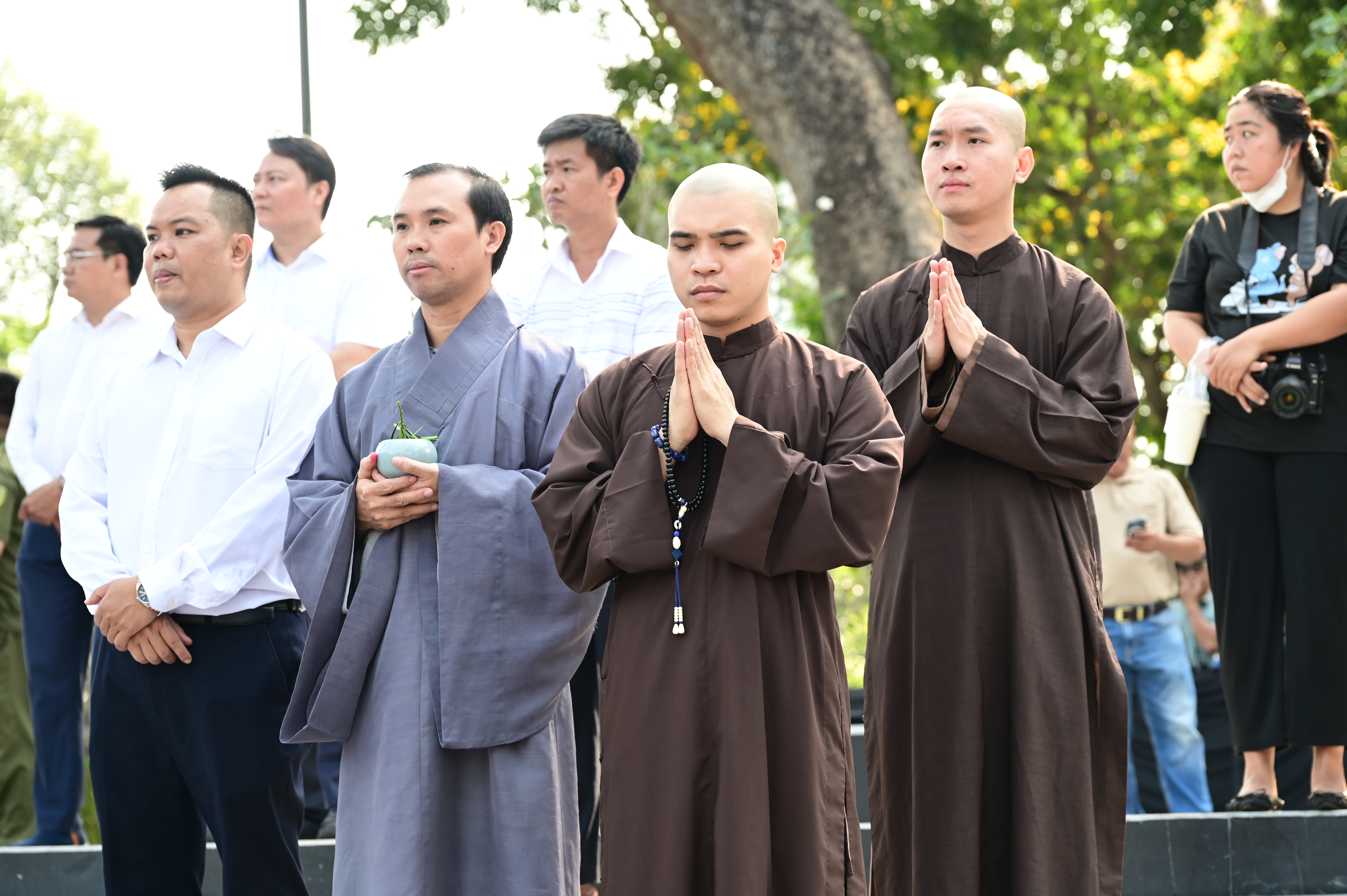 Sau lễ tưởng niệm, Ban Thường trực Ủy ban MTTQ Việt Nam TPHCM phối hợp với Ban Trị sự Giáo hội Phật giáo Việt Nam TPHCM tổ chức lễ cầu siêu. Ảnh: VĂN MINH