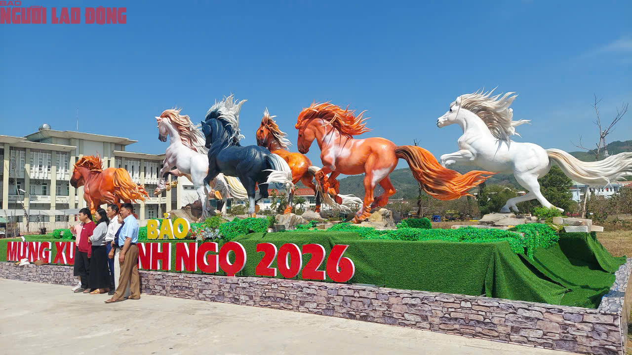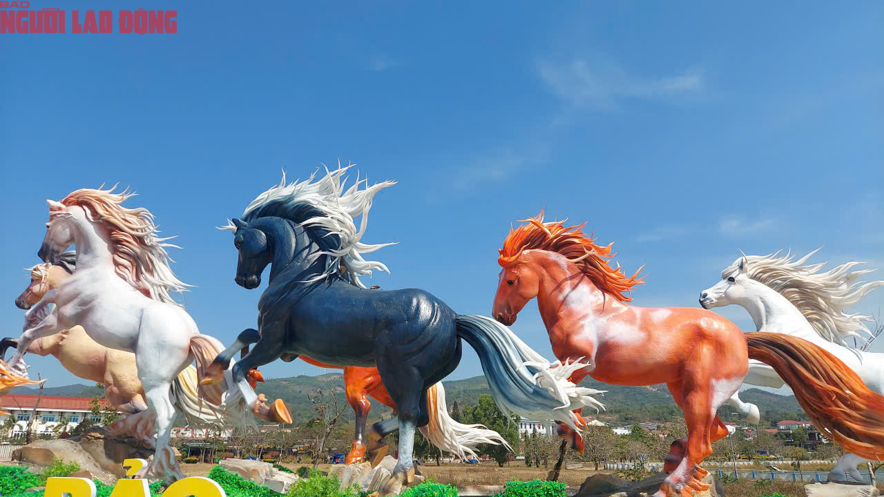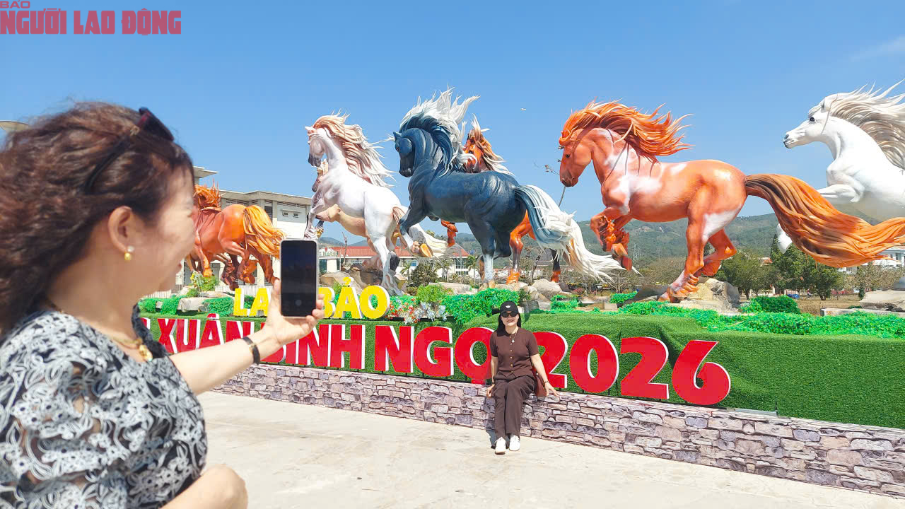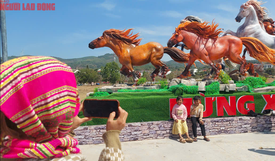 Ngày 14-2 (nhằm ngày 27 Tết), nhiều người dân đã tìm đến xã Lao Bảo (tỉnh Quảng Trị) để được chiêm ngưỡng,"check-in" cùng đàn linh vật ngựa oai phong trưng bày tại công viên xã này.