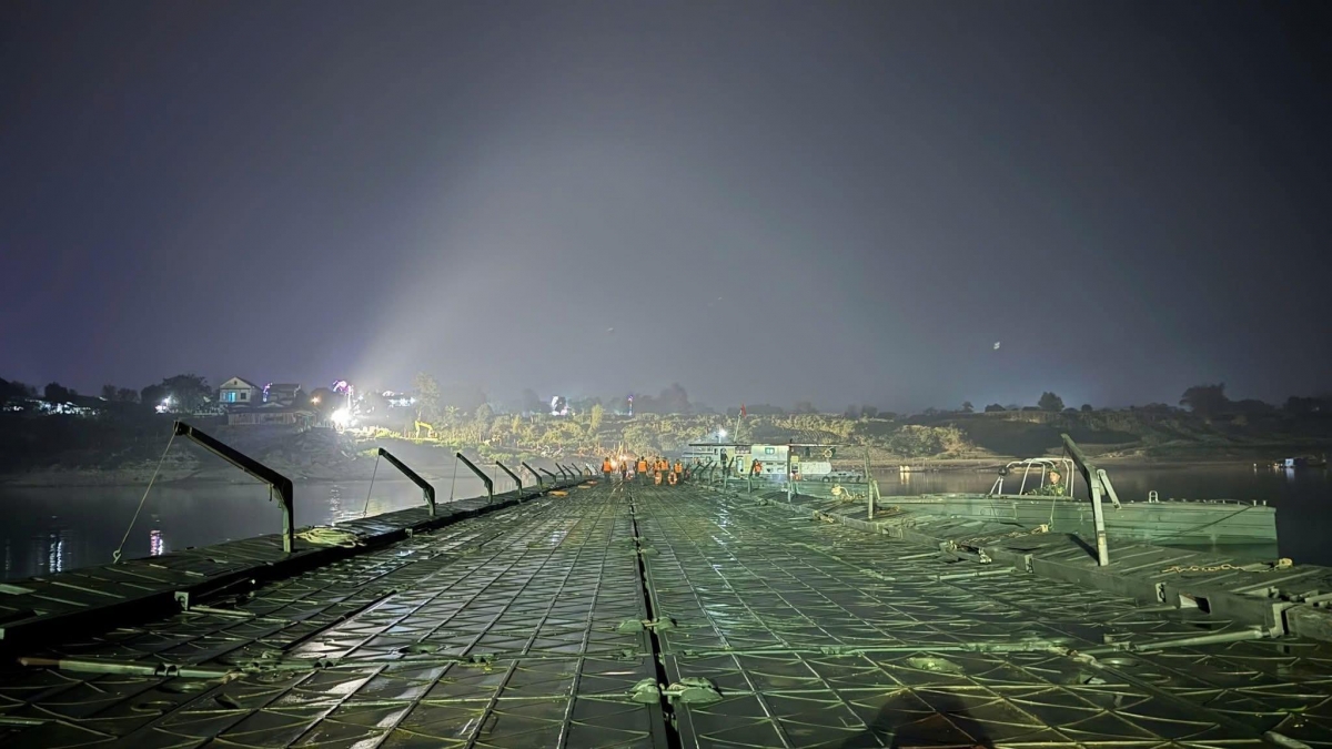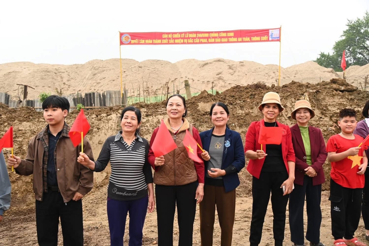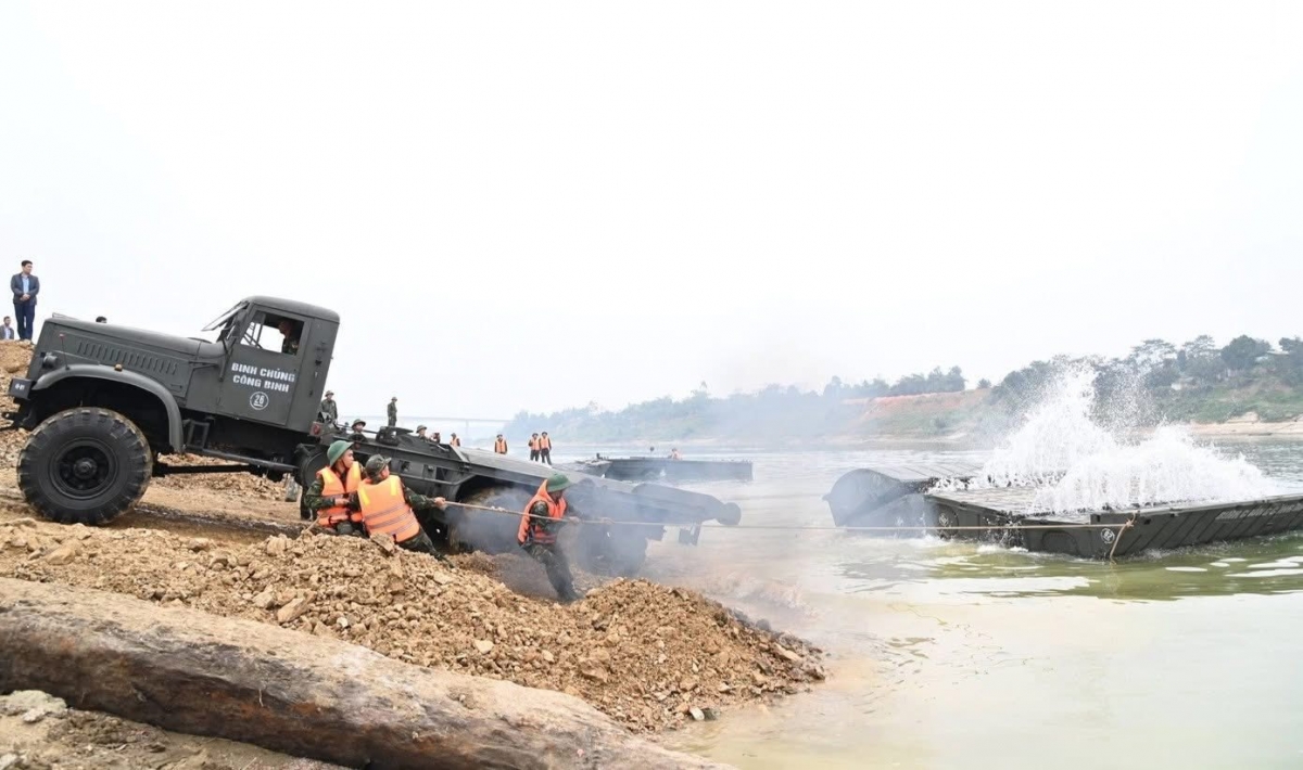 Lữ đoàn 249 Công binh huy động hơn 150 cán bộ chiến sĩ cùng 60 đầu phương tiện tham gia bắc cầu phao.