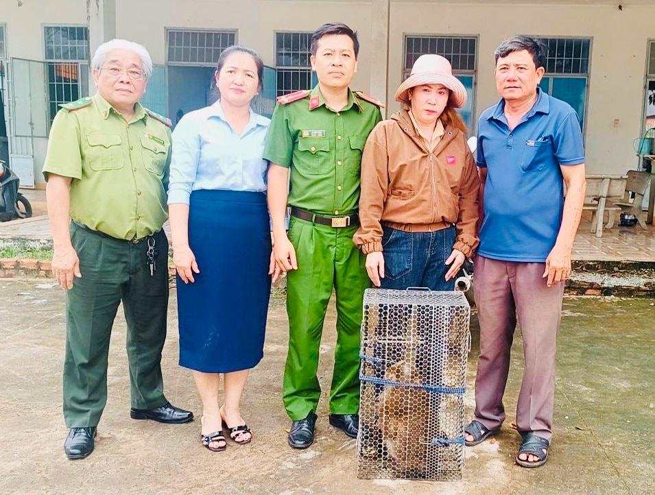 Công an xã Nha Bích phối hợp với Hạt Kiểm lâm Khu vực 6 và Trạm Chăn nuôi – Thủy sản Khu vực 7 tiếp nhận, chăm sóc và hoàn tất thủ tục bàn giao để đưa cá thể khỉ trở lại môi trường tự nhiên.