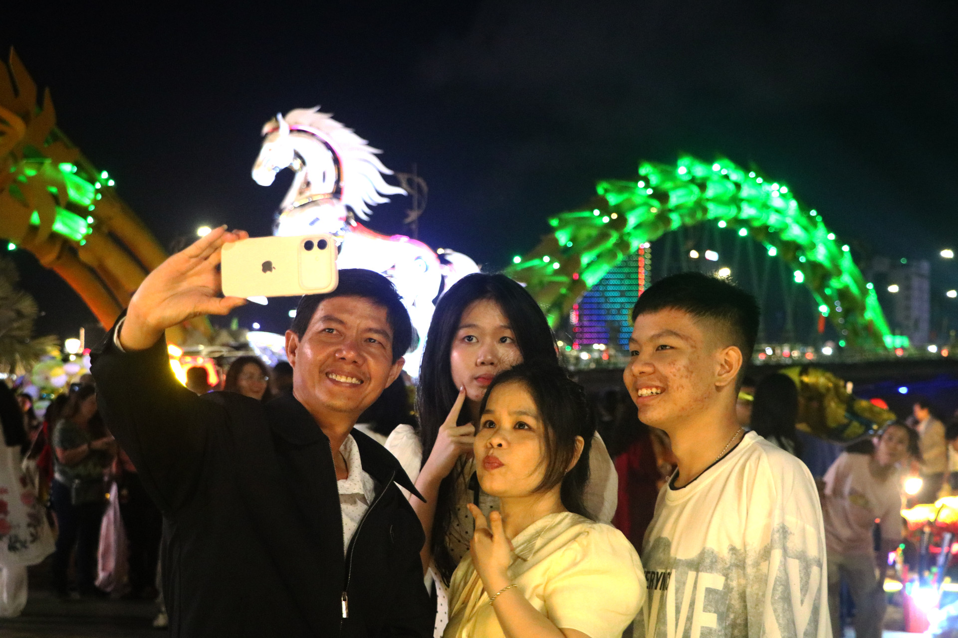 Trong dịp cuối năm, đặc biệt vào đêm 16/2 (đêm giao thừa), các không gian trang trí hoa xuân và các linh vật tại đôi bờ sông Hàn (phường Hòa Cường và phường Hải Châu), phố cổ Hội An (phường Hội An), Quảng trường 24 tháng 3 (phường Bàn Thạch)... và nhiều điểm vui chơi, giải trí công cộng... thu hút nhiều người dân và du khách đến tham quan, check-in, lưu lại những bức ảnh đẹp bên người thân, chờ đón màn pháo hoa mừng năm mới và chúc nhau những thông điệp an lành.