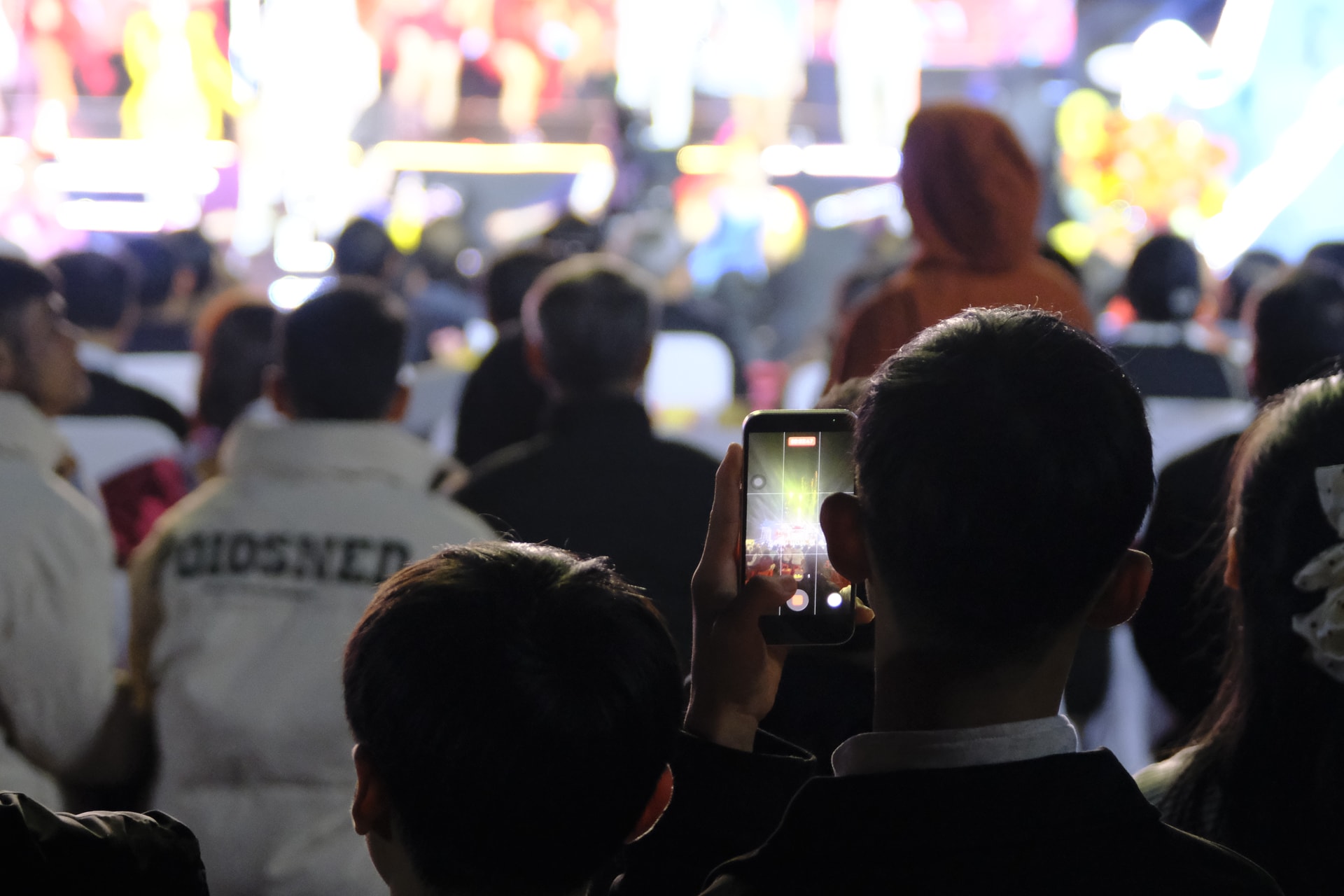 Người dân hào hứng dùng điện thoại ghi lại màn bắn pháo hoa