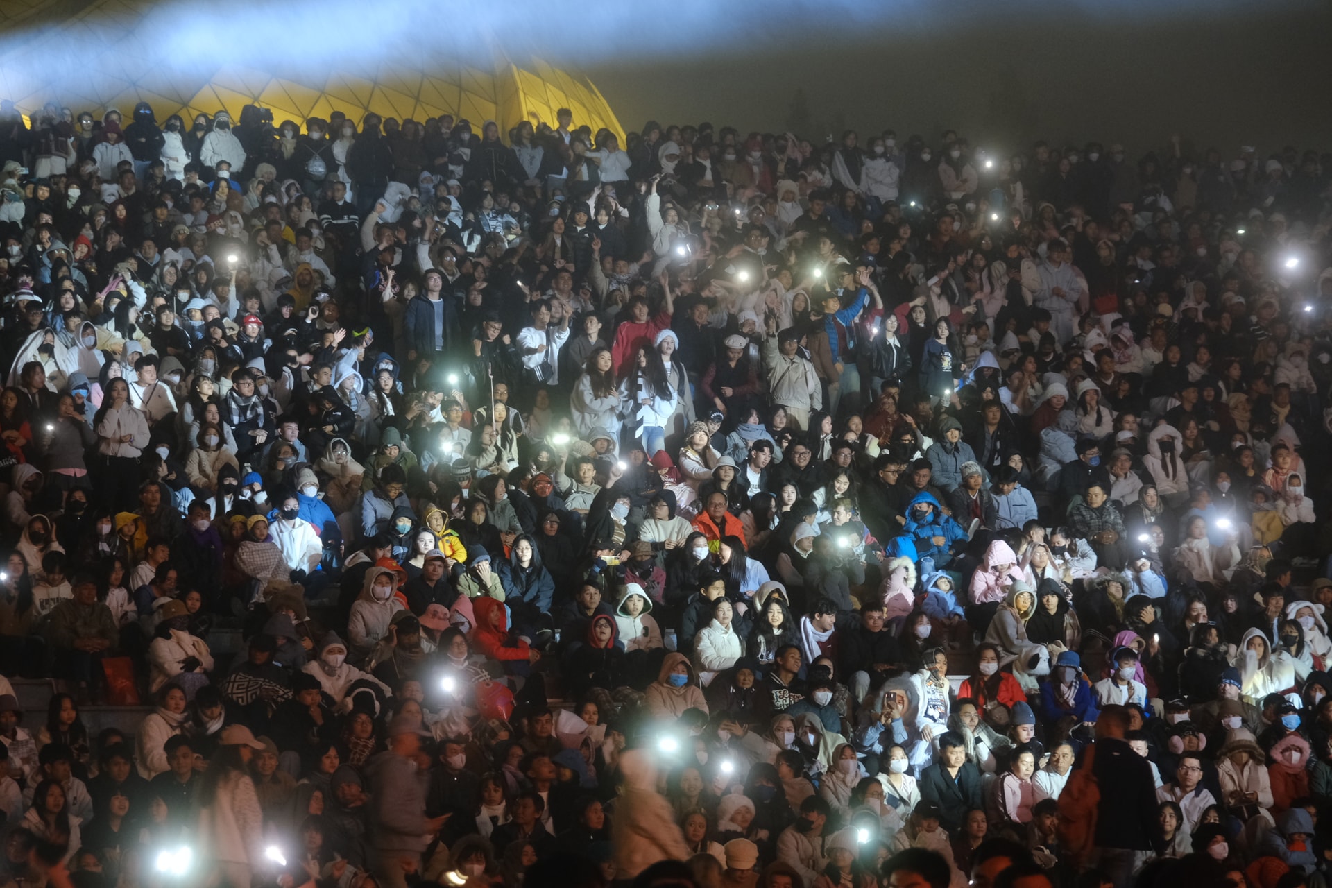 Mặc dù thời tiết tại Đà Lạt về khuya chỉ còn 12 độ C, nhưng đã có hơn 20.000 người dân và du khách đổ về Quảng trường Lâm Viên để đón chờ giây phút chuyển giao năm mới 2026